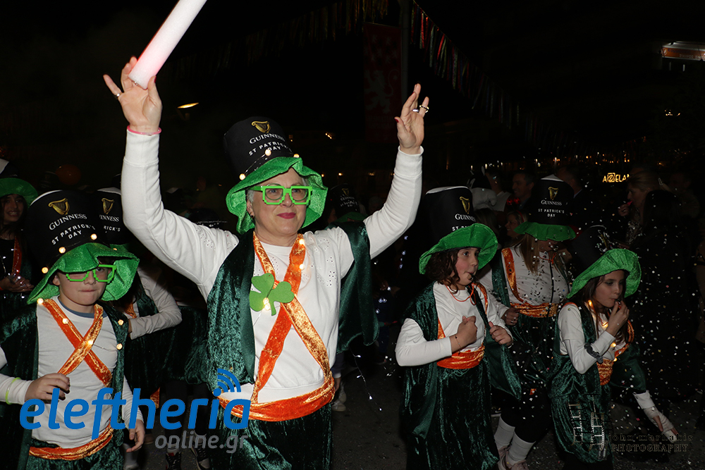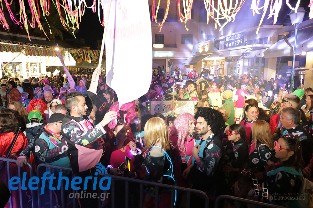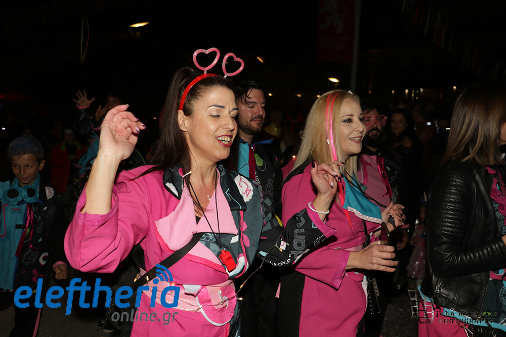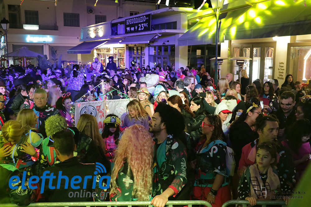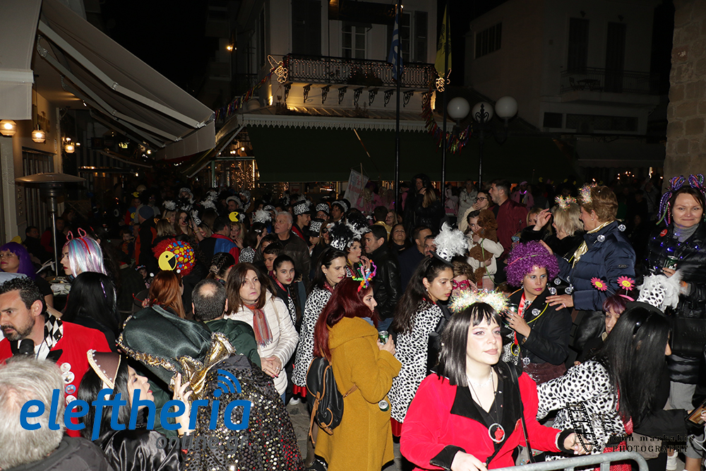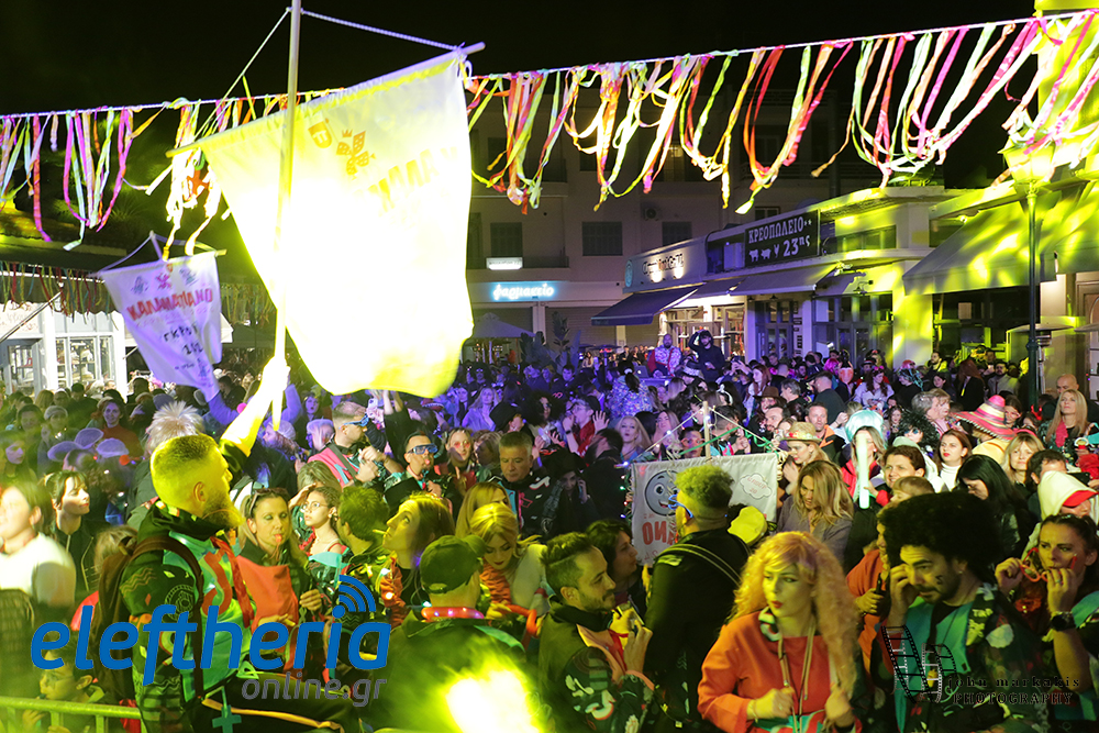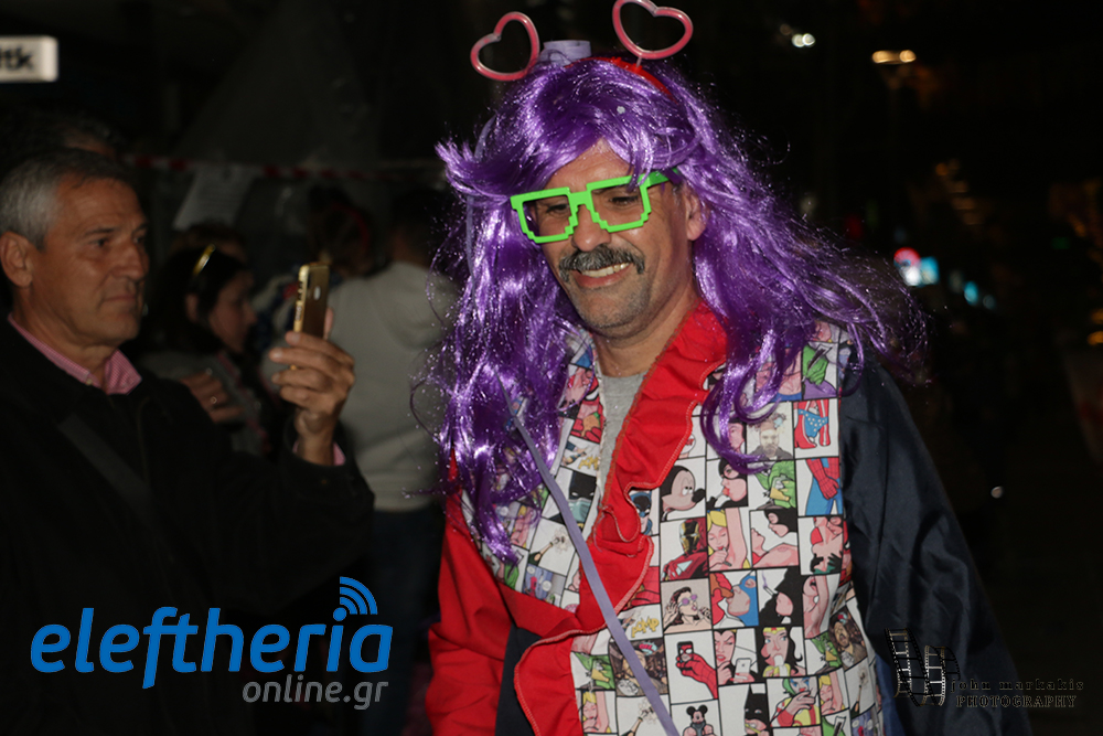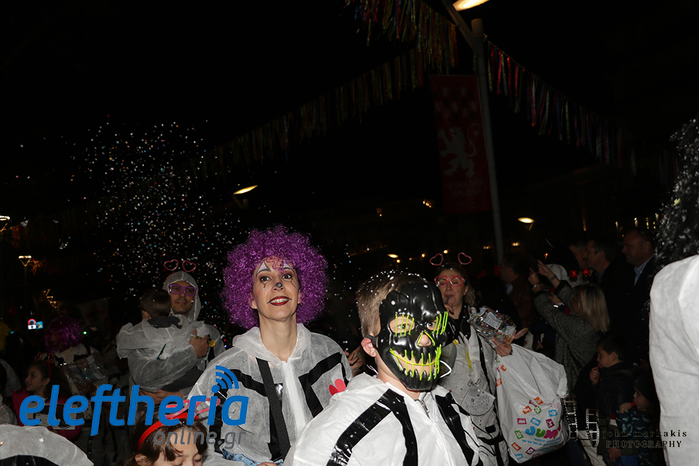 Η νυχτερινή παρέλαση ξεκίνησε από το νότιο τμήμα της οδού Αριστομένους και κατέληξε στο Ιστορικό Κέντρο, εκεί όπου διοργανώθηκε Street party με τον dj Pantelis.