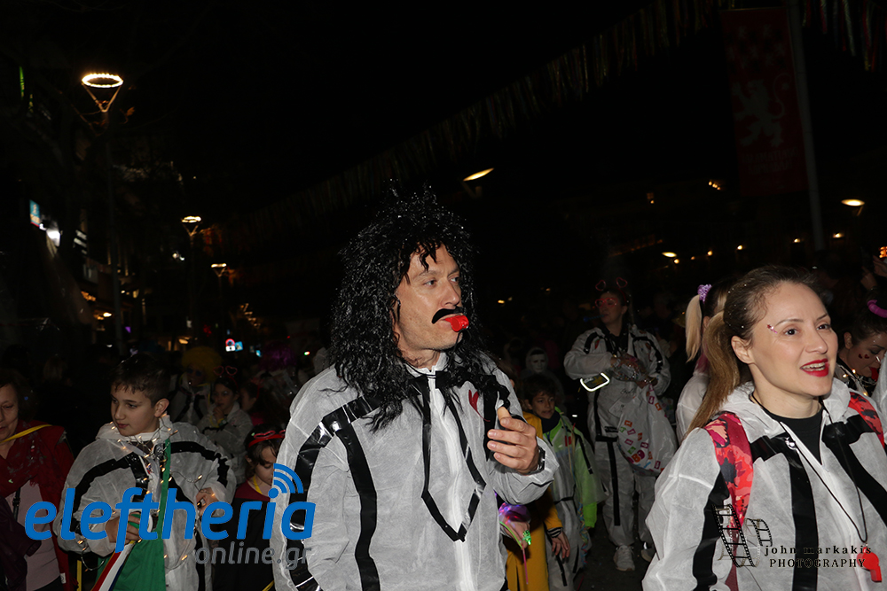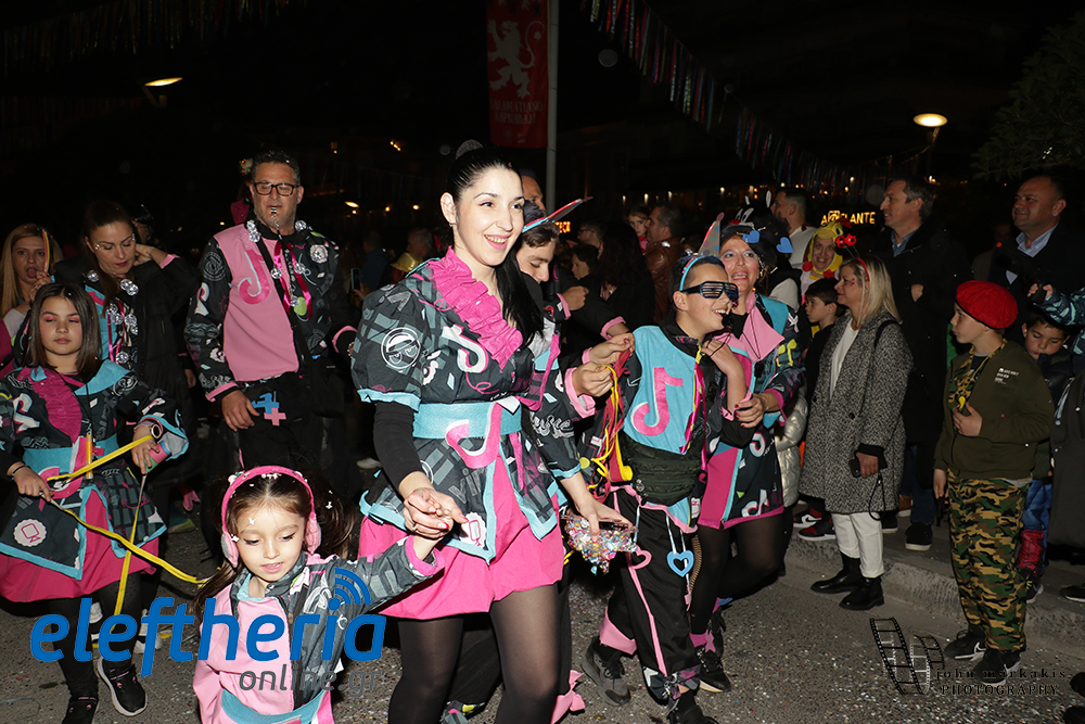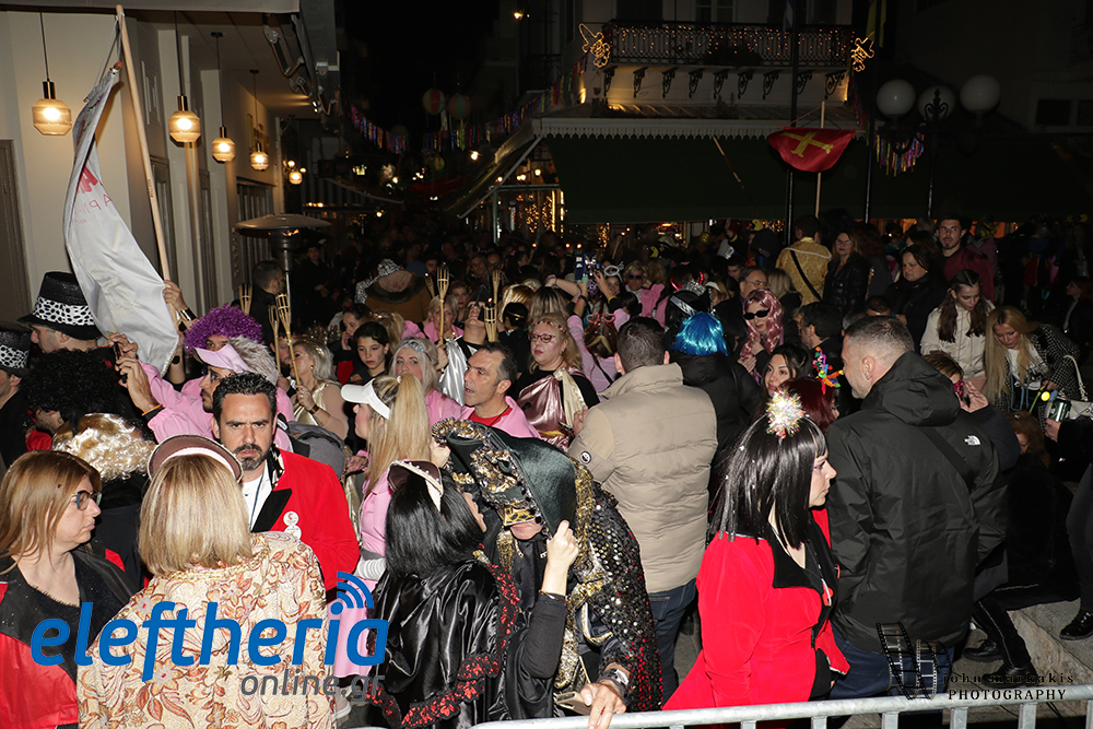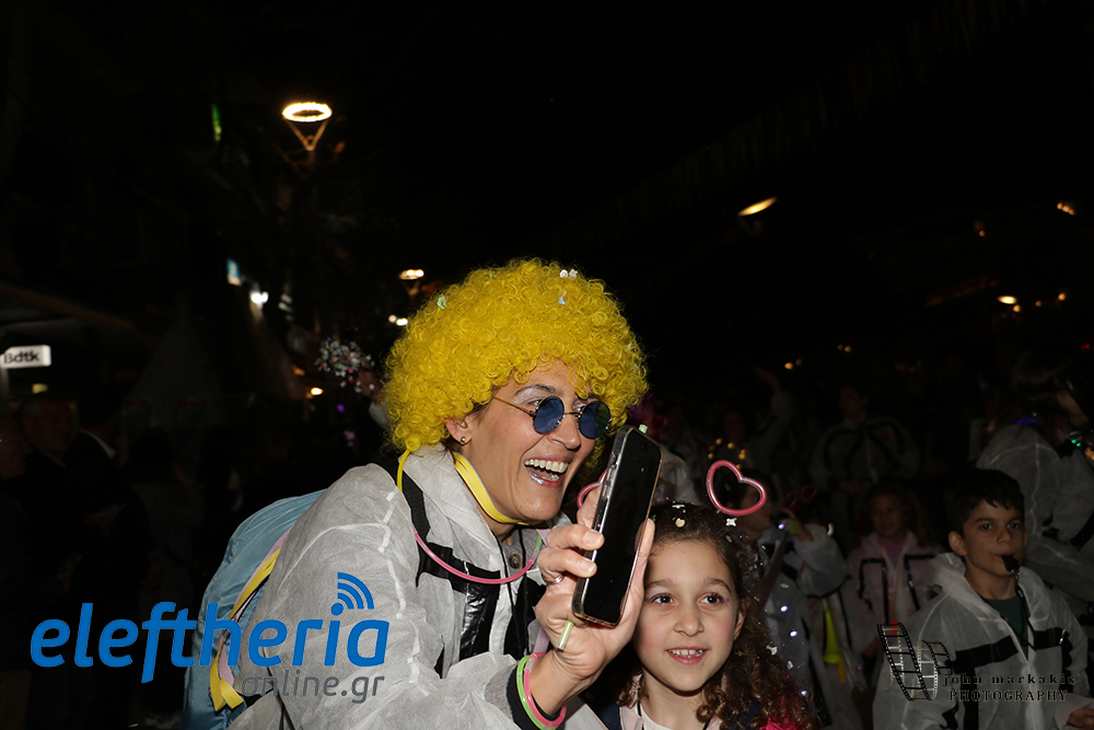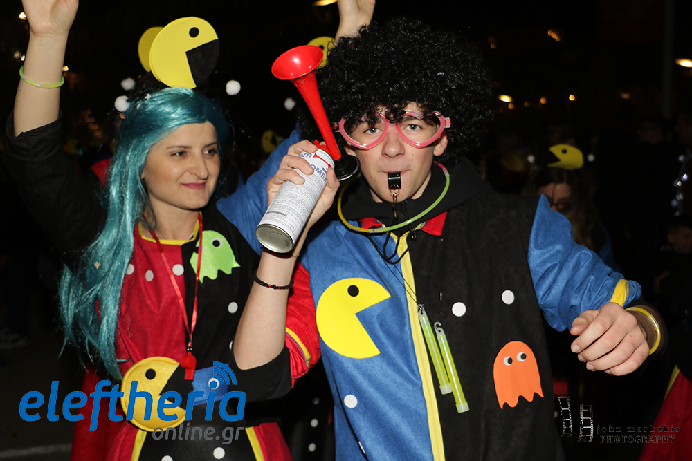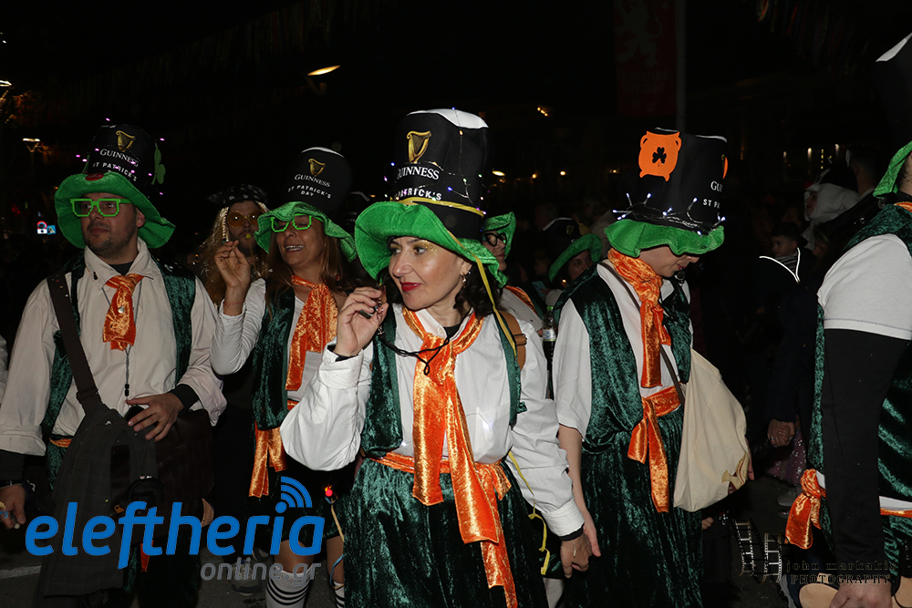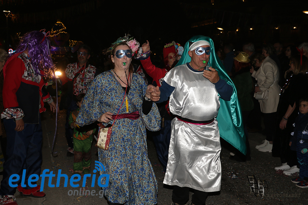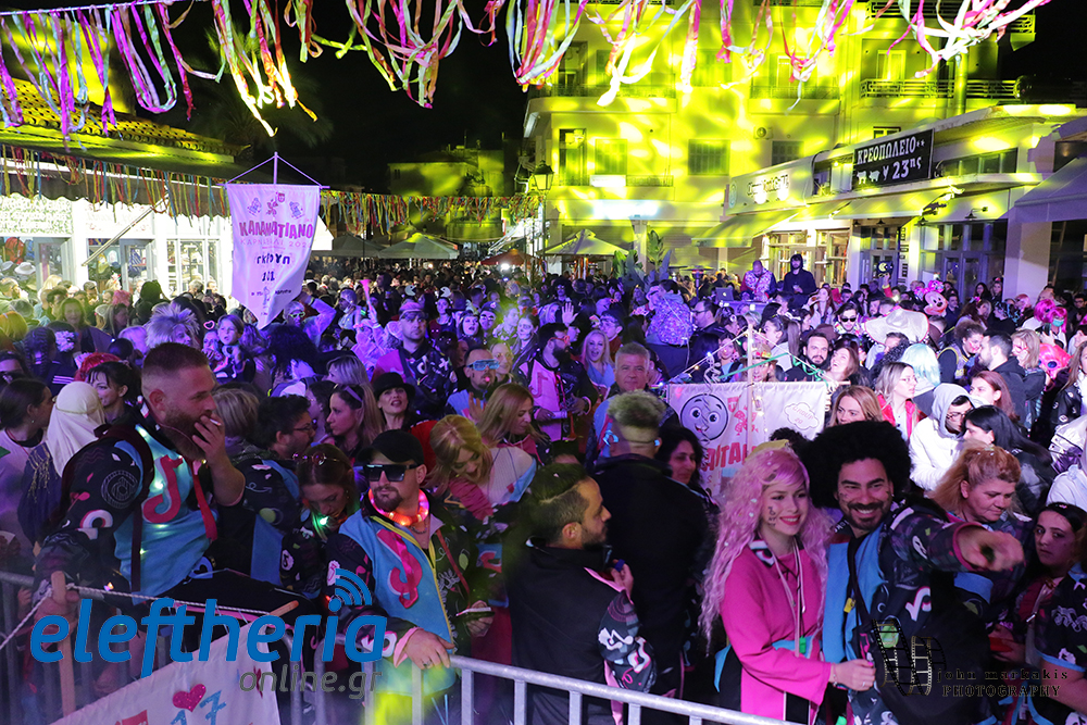 Η νυχτερινή παρέλαση ξεκίνησε από το νότιο τμήμα της οδού Αριστομένους και κατέληξε στο Ιστορικό Κέντρο, εκεί όπου διοργανώθηκε Street party με τον dj Pantelis.