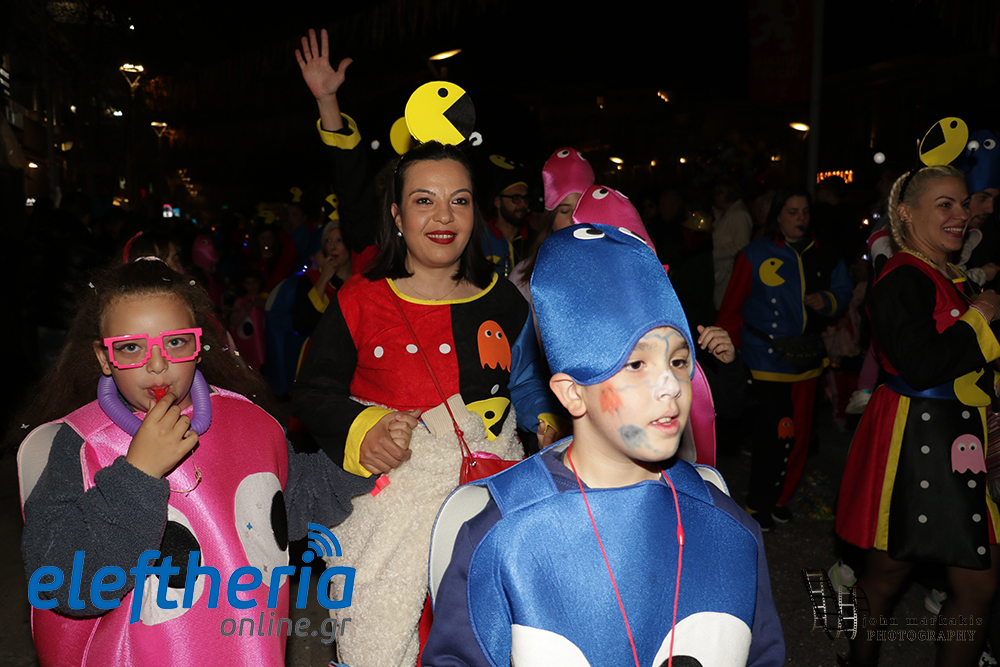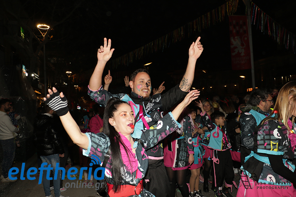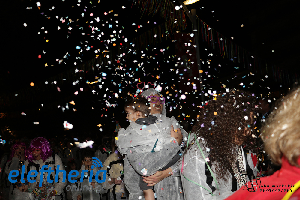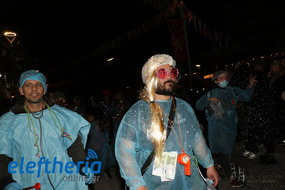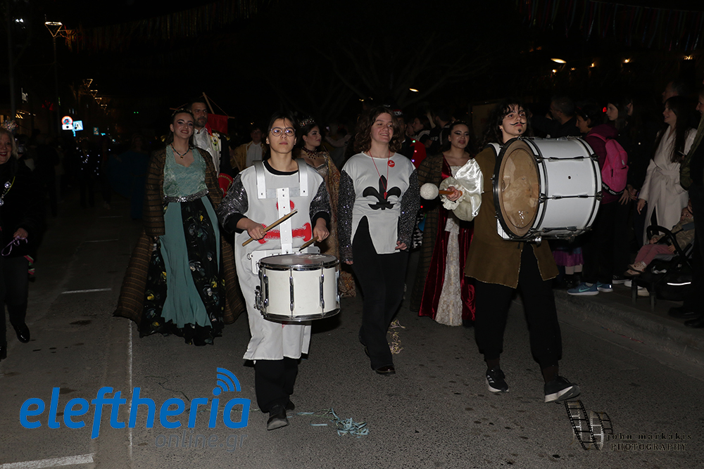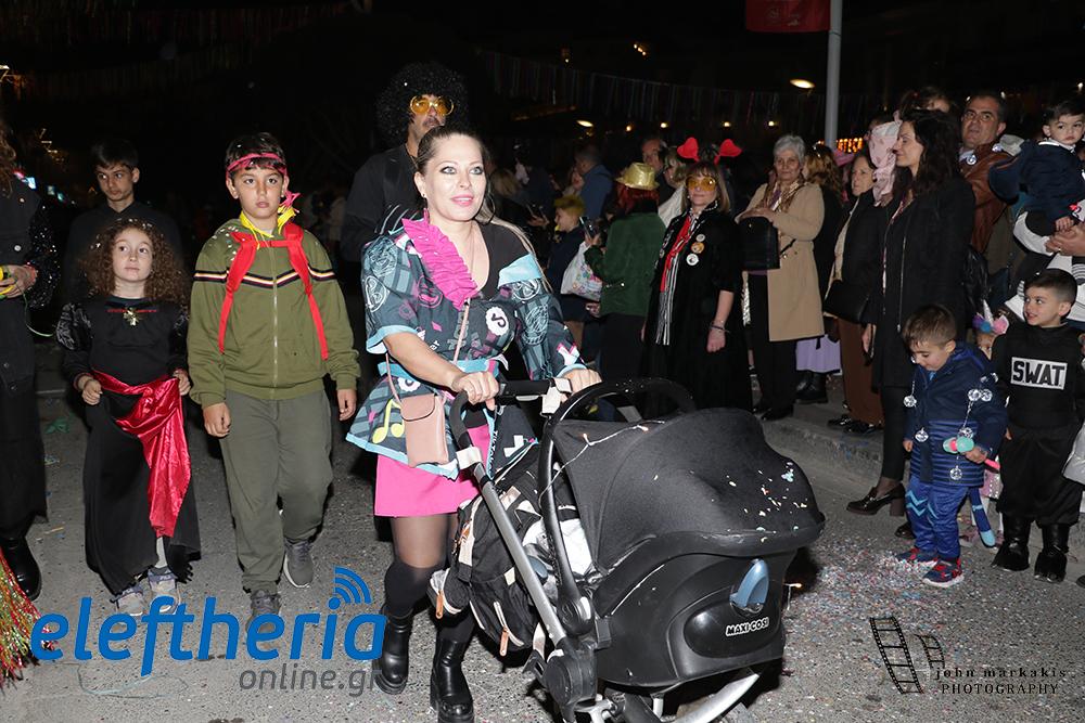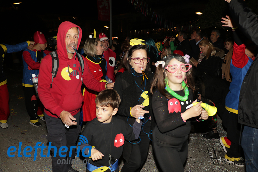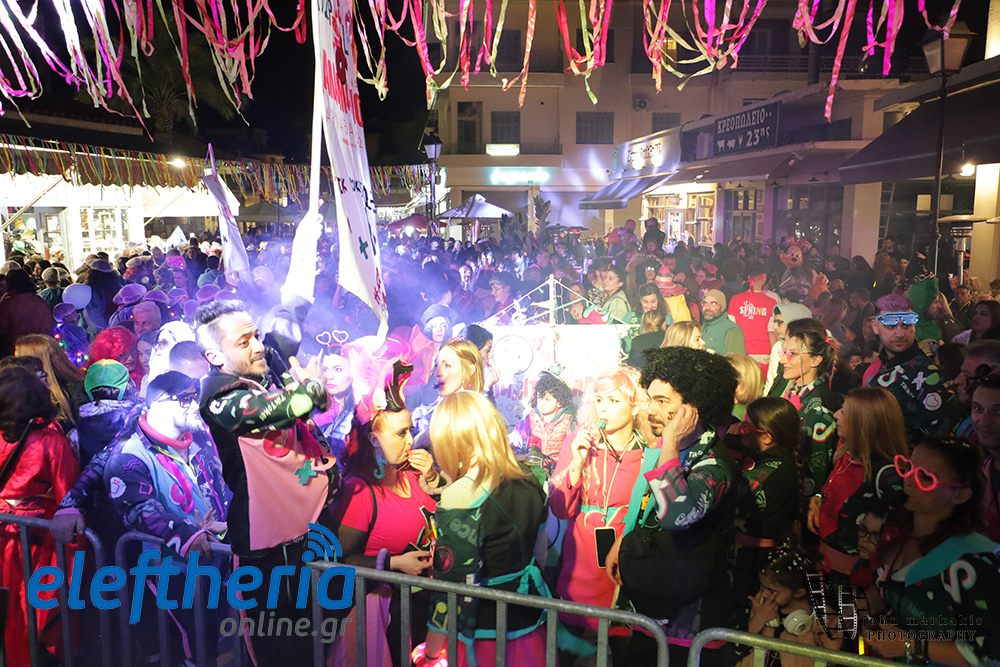 Η νυχτερινή παρέλαση ξεκίνησε από το νότιο τμήμα της οδού Αριστομένους και κατέληξε στο Ιστορικό Κέντρο, εκεί όπου διοργανώθηκε Street party με τον dj Pantelis.