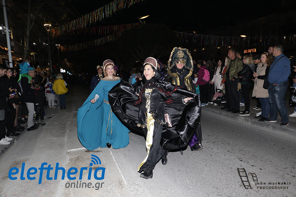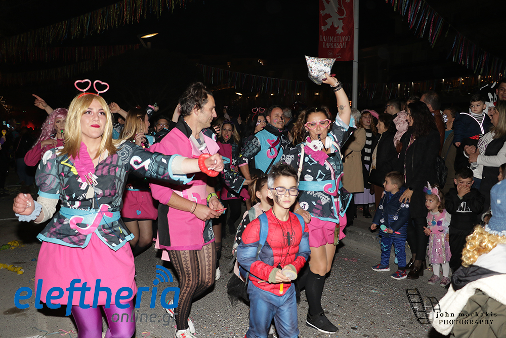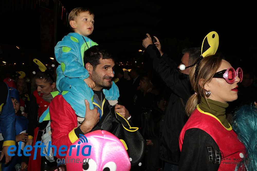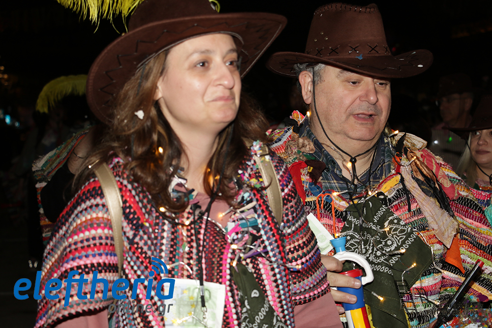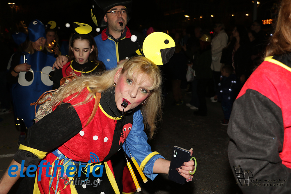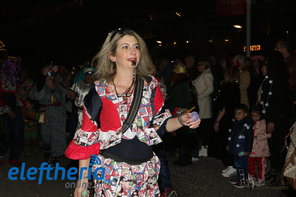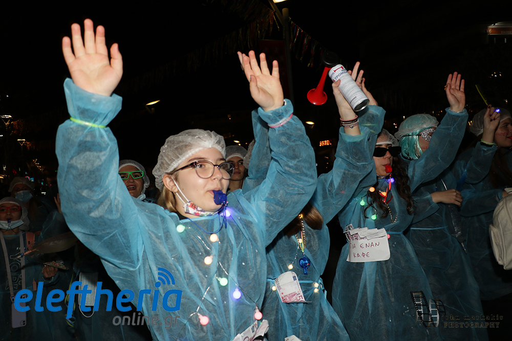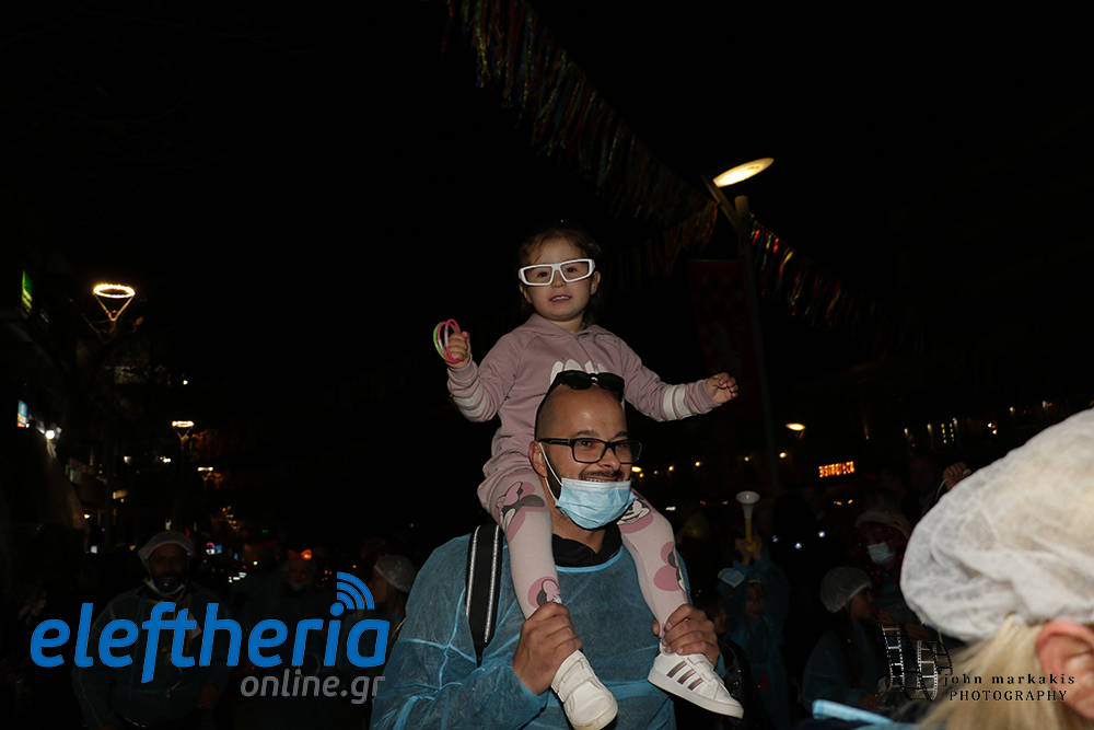 Η νυχτερινή παρέλαση ξεκίνησε από το νότιο τμήμα της οδού Αριστομένους και κατέληξε στο Ιστορικό Κέντρο, εκεί όπου διοργανώθηκε Street party με τον dj Pantelis.
