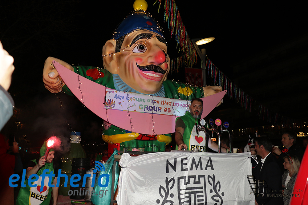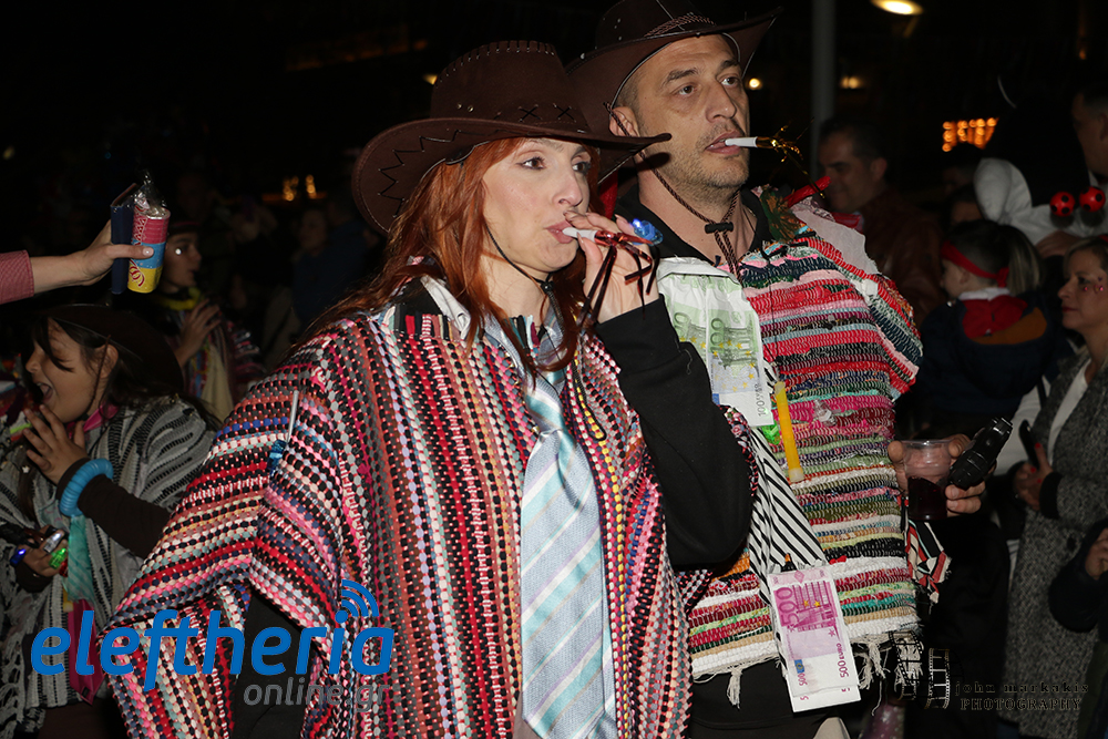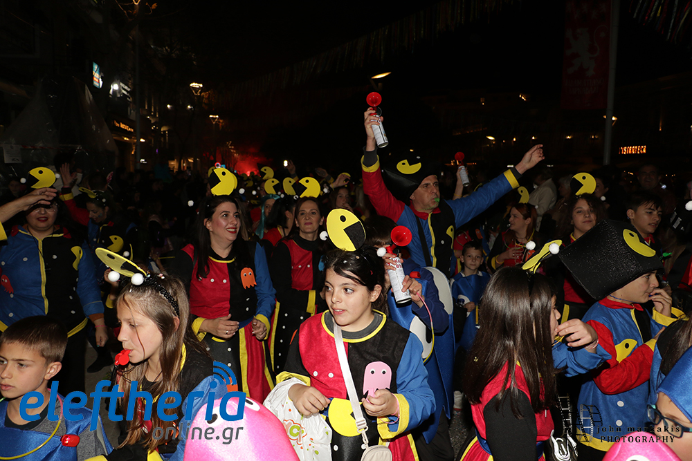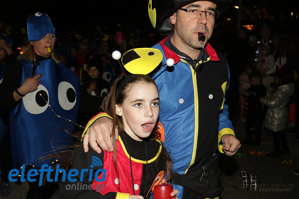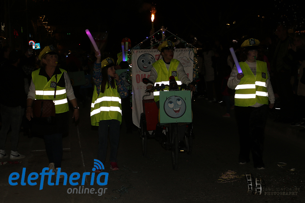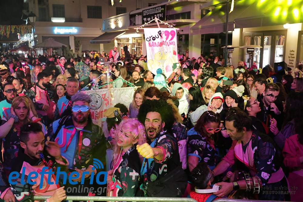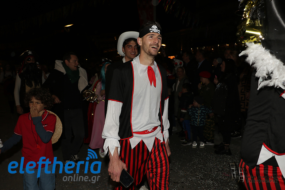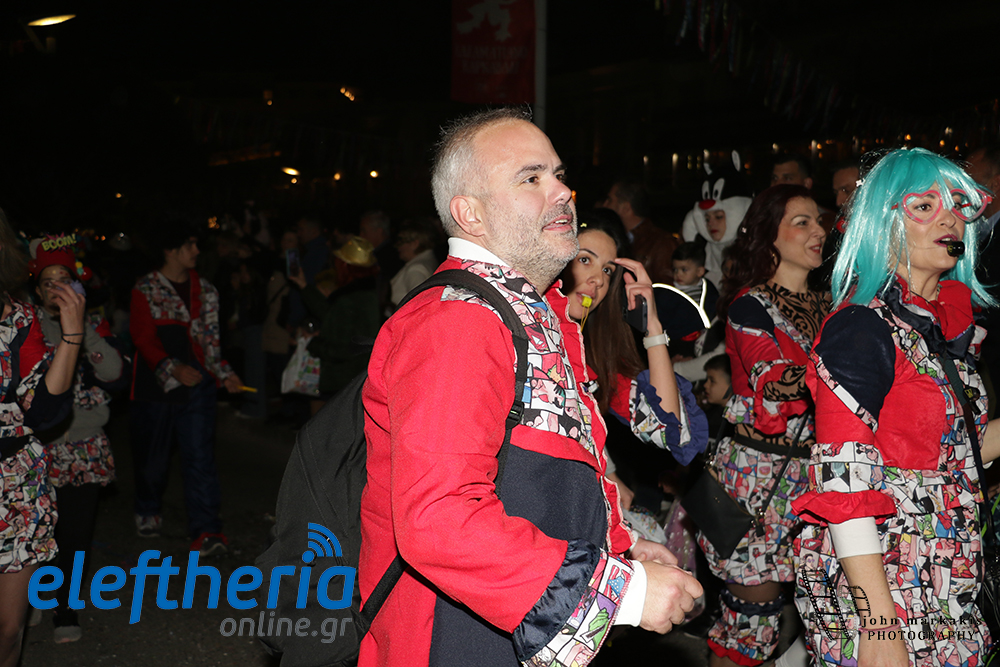 Η νυχτερινή παρέλαση ξεκίνησε από το νότιο τμήμα της οδού Αριστομένους και κατέληξε στο Ιστορικό Κέντρο, εκεί όπου διοργανώθηκε Street party με τον dj Pantelis.