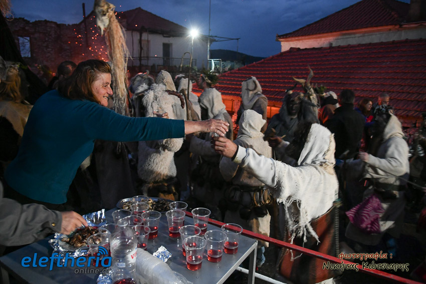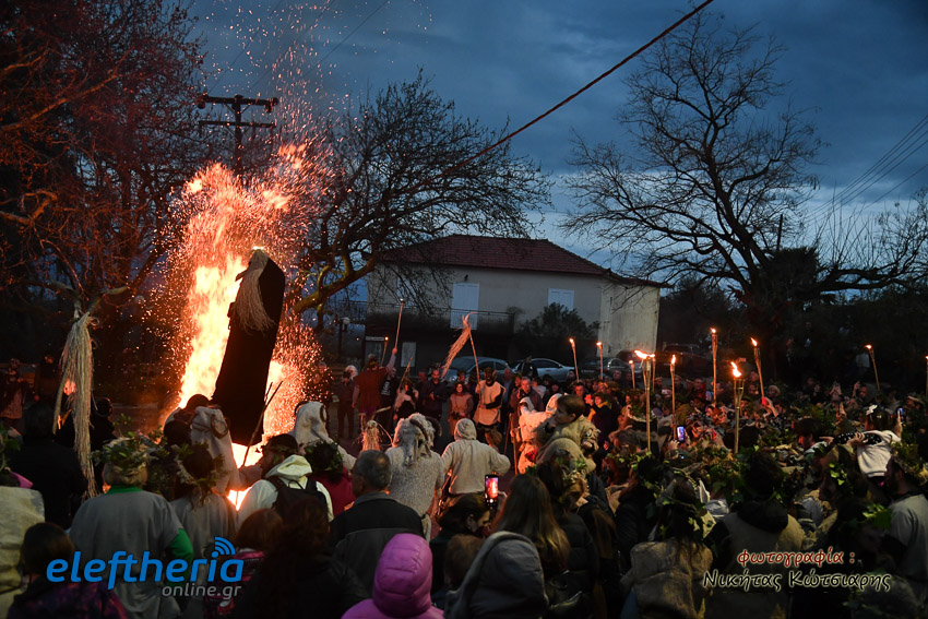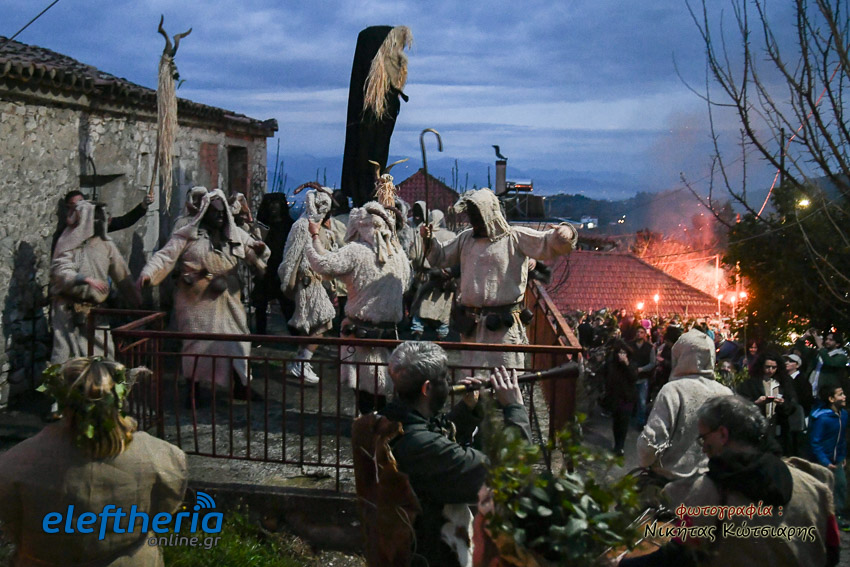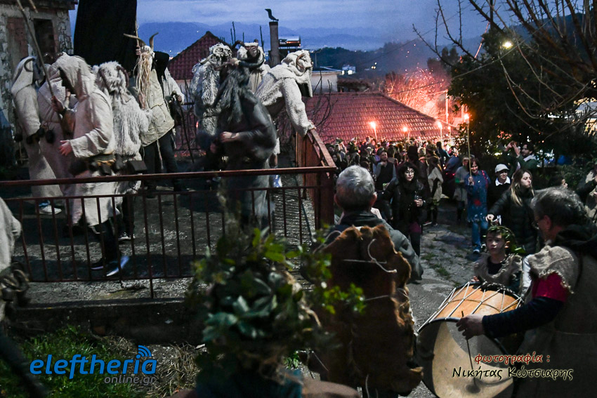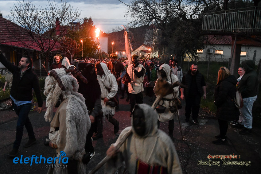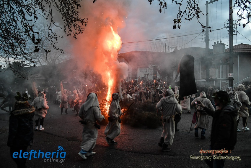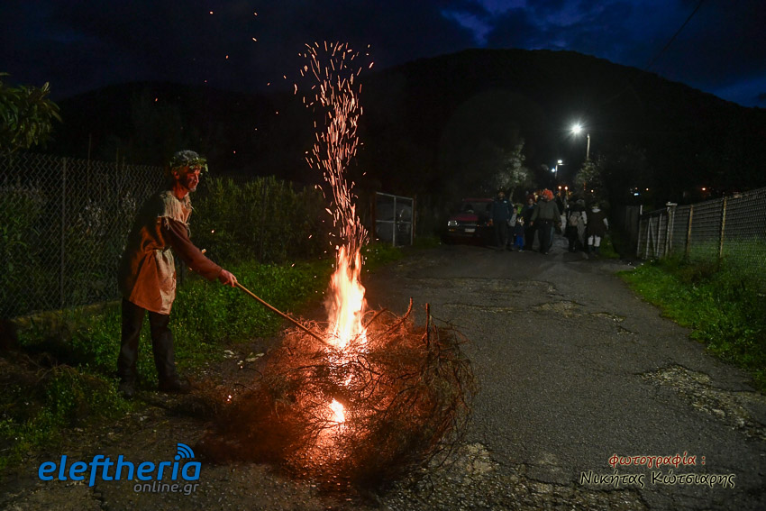 Το ντύσιμο των καρναβαλιστών ξεκίνησε το μεσημέρι και η πατινάδα στο χωριό το απόγευμα, με τους καρναβαλιστές να χορεύουν και τραγουδούν συμπαρασύροντας κατοίκους και επισκέπτες σε ατελείωτους χορούς γύρω από τις φωτιές στις γειτονιές, συνοδεία κερασμάτων, ξυπνώντας τη φύση από το χειμερινό της ύπνο για να είναι η Γη πιο γόνιμη.