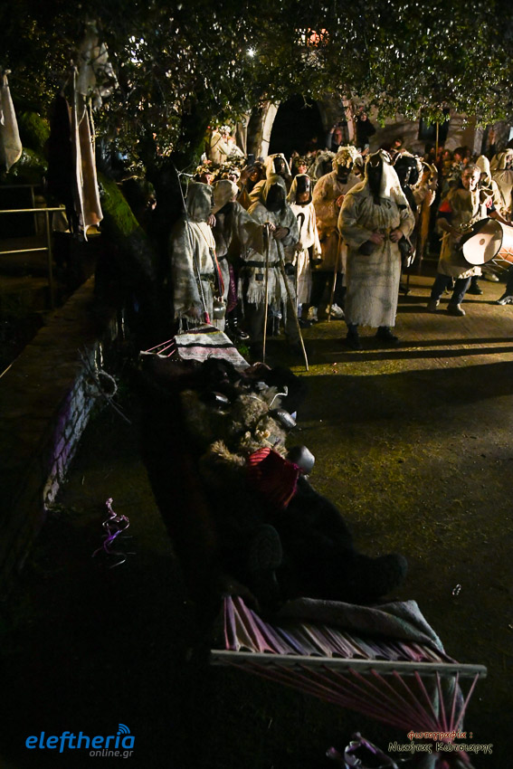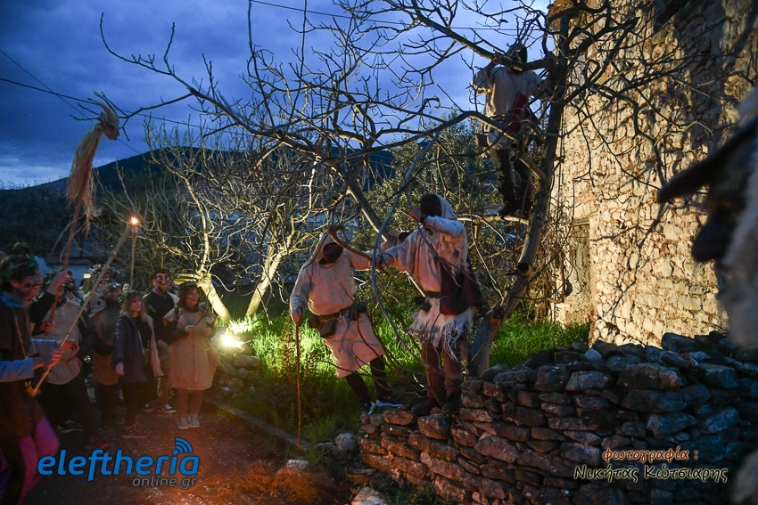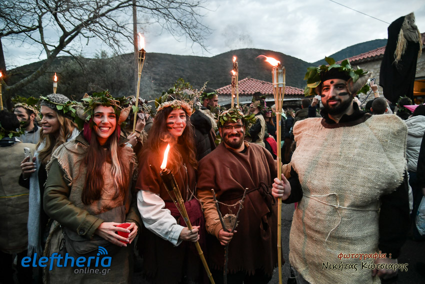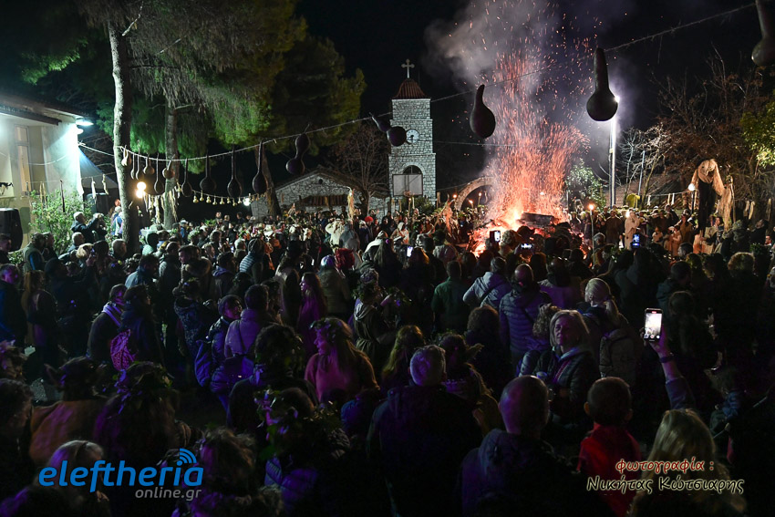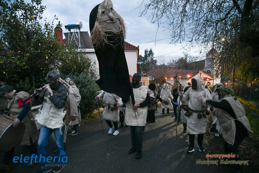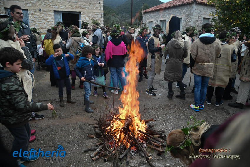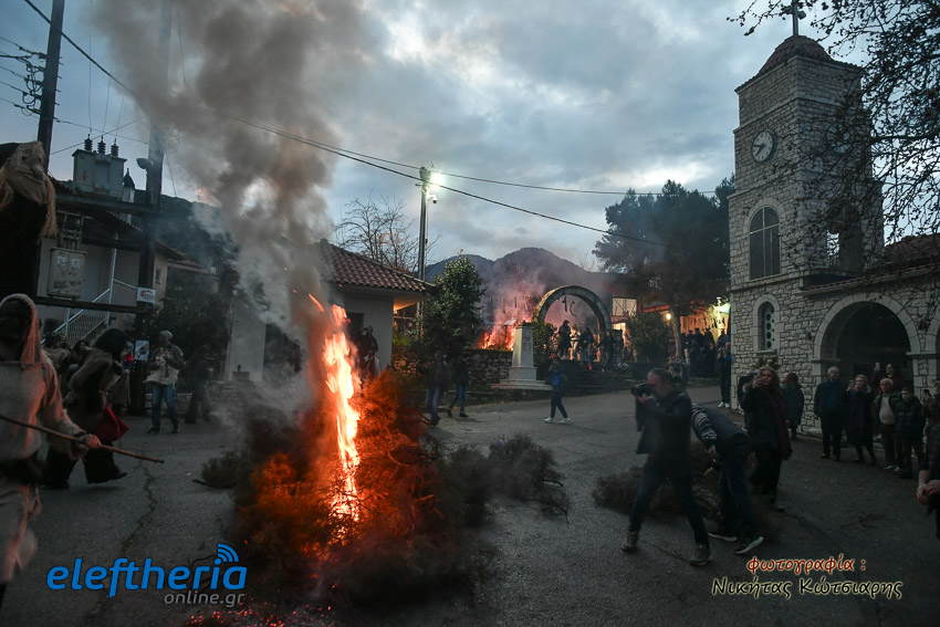 Το ντύσιμο των καρναβαλιστών ξεκίνησε το μεσημέρι και η πατινάδα στο χωριό το απόγευμα, με τους καρναβαλιστές να χορεύουν και τραγουδούν συμπαρασύροντας κατοίκους και επισκέπτες σε ατελείωτους χορούς γύρω από τις φωτιές στις γειτονιές, συνοδεία κερασμάτων, ξυπνώντας τη φύση από το χειμερινό της ύπνο για να είναι η Γη πιο γόνιμη.