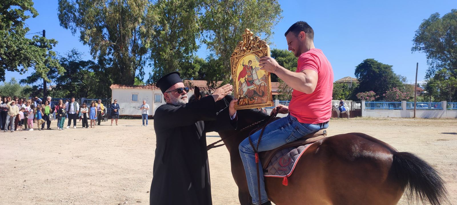 Στη συνέχεια αναβίωσε το έθιμο των ιππέων. Οι ιππείς ξεκίνησαν από τον προαύλιο χώρο της Εκκλησίας του Αγίου Γεωργίου, διέσχισαν τις οδούς Αντ. Μιχαλακέα, Ι. Μεταξά, Παναγιώταρου, Βοριανών, Κεφαλά. Έκαναν το γύρο της κεντρικής πλατείας και ακολουθώντας τη διαδρομή προς Λιμενάρι, οδό Ι. Σπέντζα και Πανάγου Λελώνη επέστρεψαν στον προαύλιο χώρο της Εκκλησίας του Αγίου Γεωργίου.