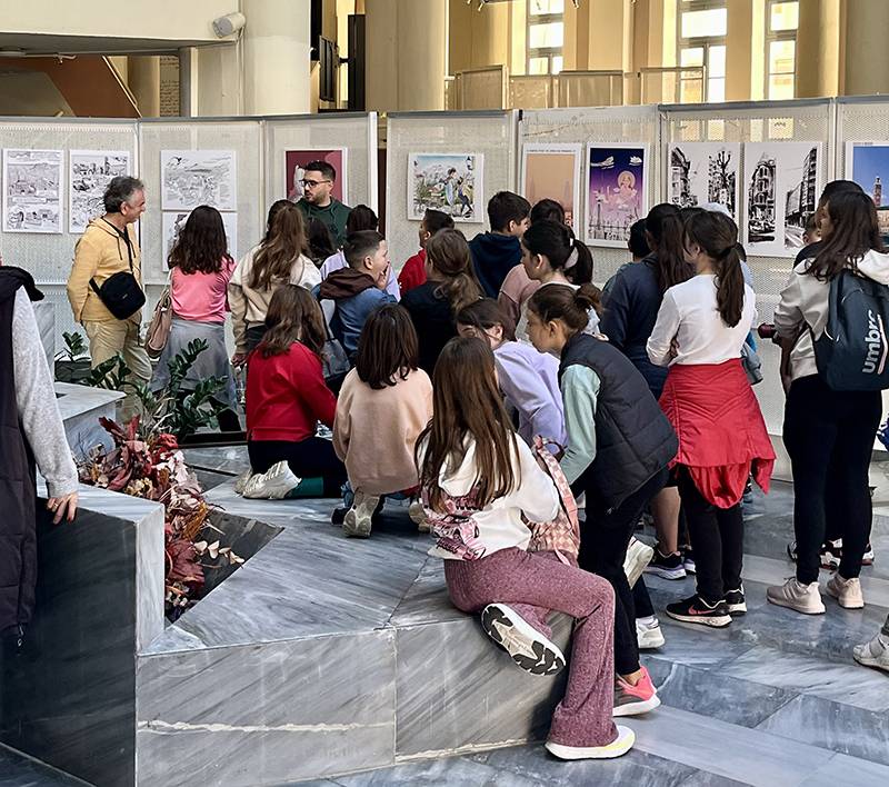 Ξενάγηση μαθητών στην έκθεση "Σκιτσοπόλεις" στο Πνευματικό Κέντρο Καλαμάτας