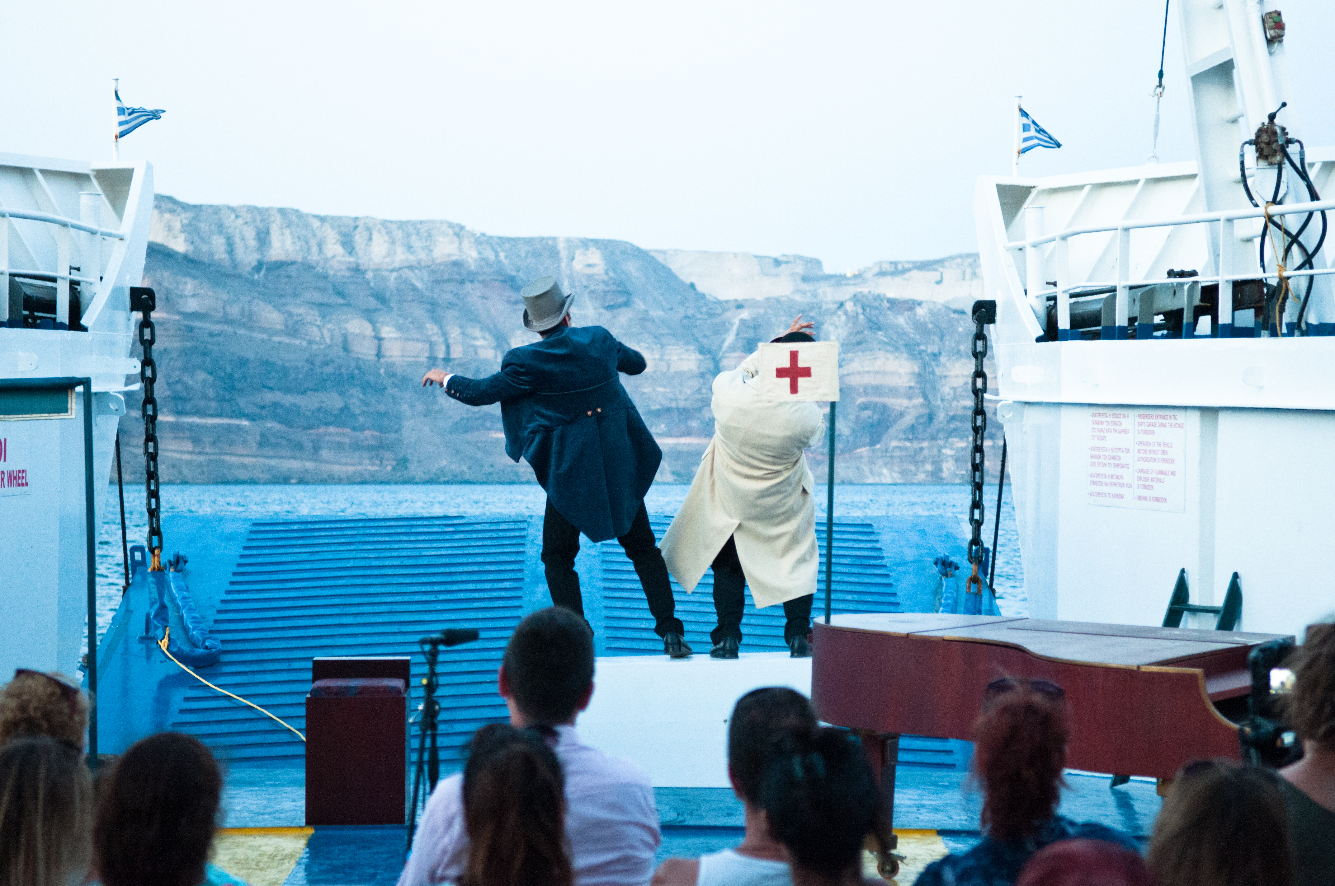 Με αφορμή και αιτία την ιστορία του 1900, γεννιέται η ιδέα μιας παράστασης που θα κατέβει από το θεατρικό καράβι της Αθήνας και θα ταξιδέψει ανάμεσα στη στεριά και τη θάλασσα, όπου υπάρχουν   θεατές. Και εάν δεν υπάρχουν θα προσπαθήσει να δημιουργήσει τη   συνθήκη να υπάρξουν. Στις βαλίτσες της παράστασης, μαζί με τα λόγια του έργου υπάρχει γραμμένη στο χέρι η φράση: “να ταξιδέψουμε σε τόπους όπου υπάρχει ανάγκη για μία πολιτιστική δυνατότητα”. Οι  πρώτες παραστάσεις γίνονται σε ένα αγκυροβολημένο καράβι, εν πλω και σε ένα καρνάγιο. Το ταξίδι θα συνέχιζε για 7 ολόκληρα χρόνια.