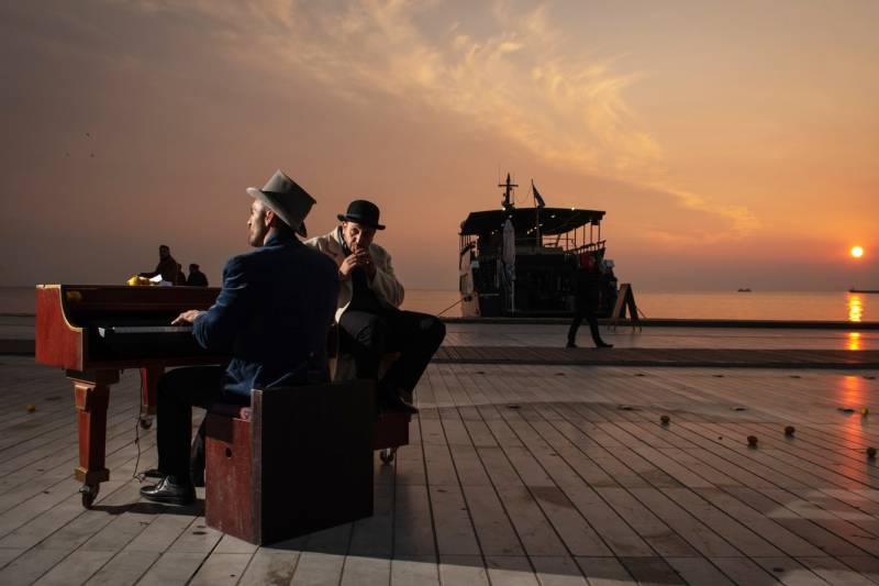 Οι θεατές έχουν συγκεντρωθεί στο Δημοτικό Πνευματικό Κέντρο αυτής της κεντρικής πόλης της Πελοποννήσου. Το μαγικό πιάνο του 1900 βρίσκεται απέναντί τους και περιμένει. Κουβαλά στο σώμα του τις αφηγήσεις από τους τόπους όπου έχει ταξιδέψει η παράσταση. Ιστορίες ντόπιων που δεν έφυγαν ποτέ από τον τόπο τους και ιστορίες άλλων που έφυγαν για μία καλύτερη ζωή. “Μετά από 32 ολόκληρα χρόνια στη θάλασσα θα κατέβαινα στη στεριά, για να δω τη θάλασσα”».