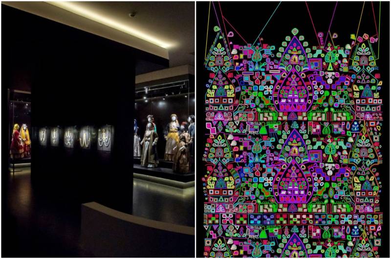Η Στηλομαντήλα της Καρπάθου, ένα παραδοσιακό νυφικό πουκάμισο από το Μενίδι Αττικής, επιτοίχια κεντήματα από τα νησιά του Ιονίου, τα κεντητικά μοτίβα της γιορτινής φορεσιάς του Αλμυρού Μαγνησίας αποτελούν έμπνευση για τη Μαρία Όλγα Βλάχου, όπως και η αγάπη ως αιώνιος δεσμός, η οικειότητα, ο έρωτας στη σύγχρονη εποχή, η επικοινωνία μέσα από τα emojis.