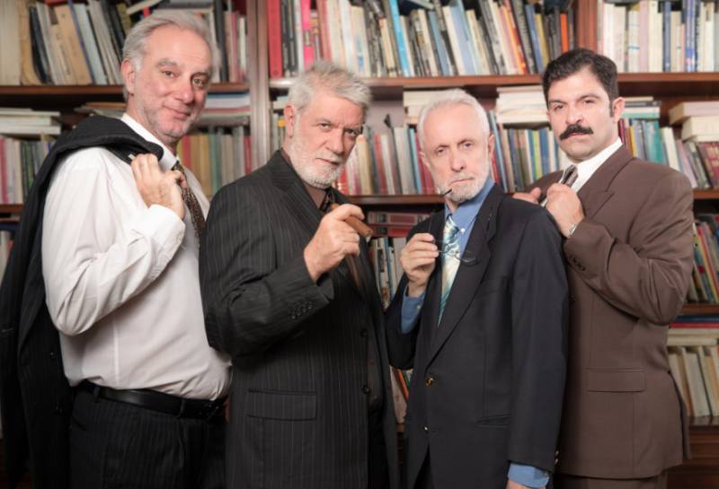Ερμηνεύουν: Θανάσης Βλαβιανός, Γιώργος Ζιόβας, Φίλιππος Σοφιανός, Γιάννης Τσουρουνάκης. Κουστούμια Βασιλική Σύρμα, σκηνικά Ναταλία Αστυπαλίτη.