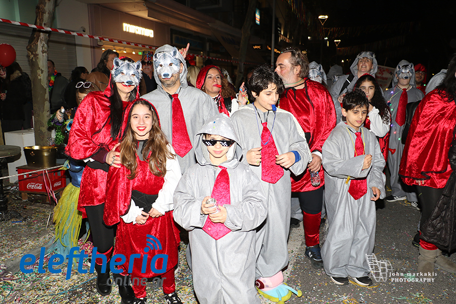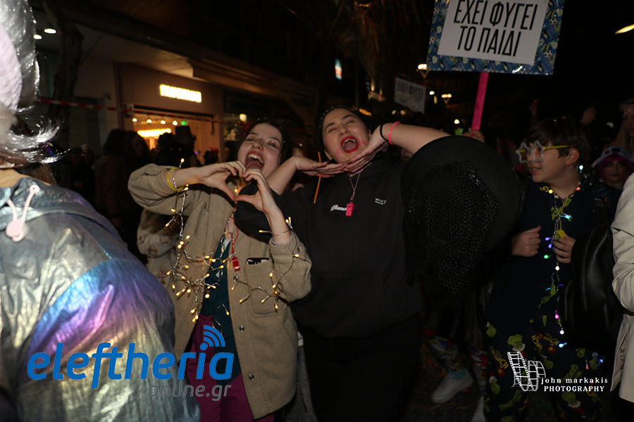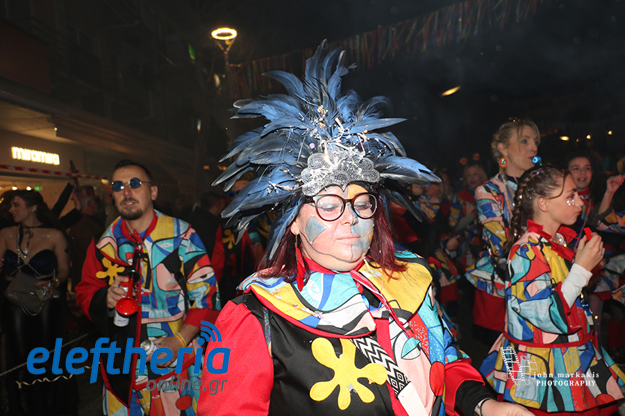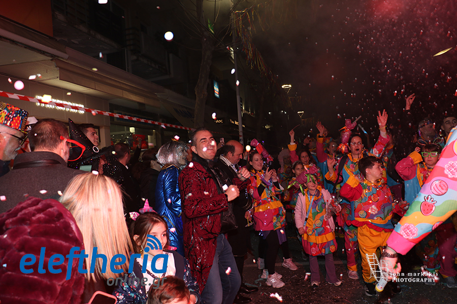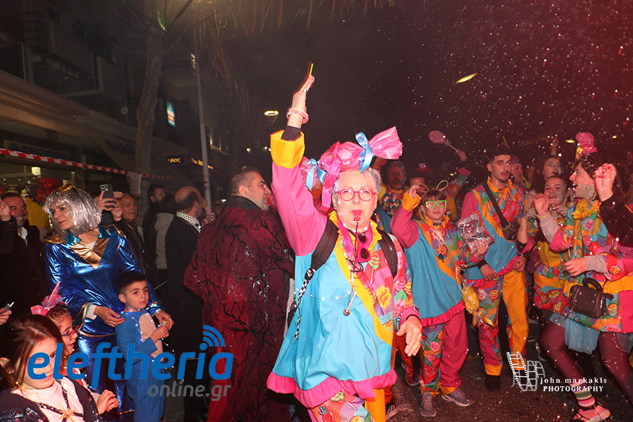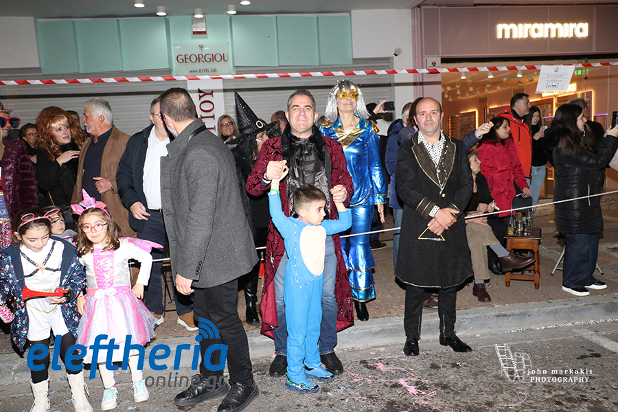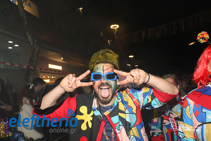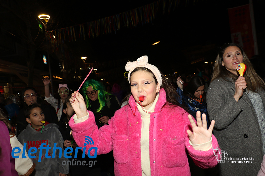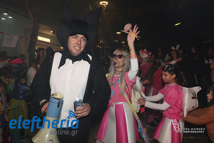 Οι δρόμοι του κέντρου μετατράπηκαν σε ένα ζωντανό σκηνικό γιορτής, όπου φώτα, ρυθμός και δημιουργικότητα ενώθηκαν σε μια βραδιά που θύμισε σε όλους πως το καρναβάλι δεν παρακολουθείται — βιώνεται.