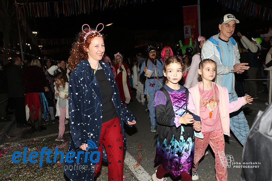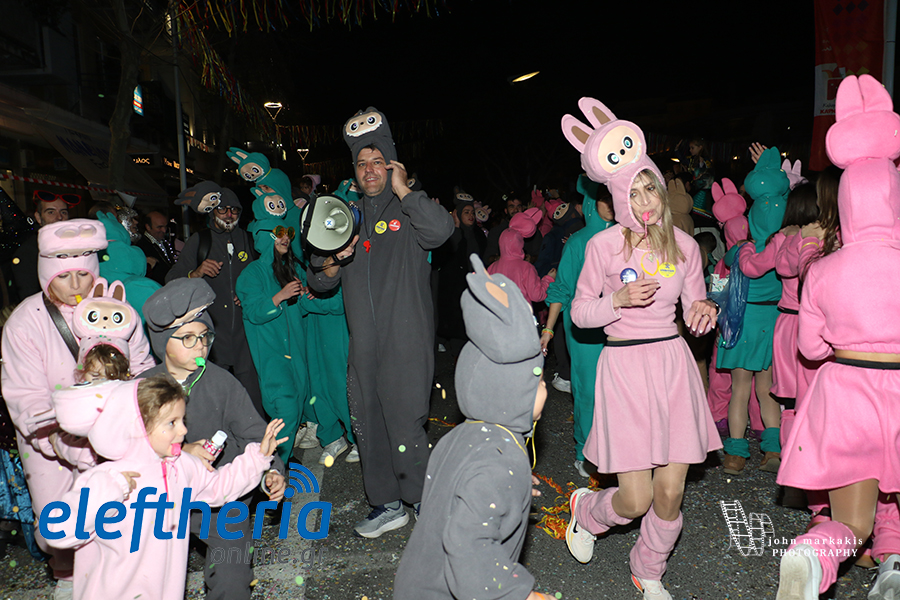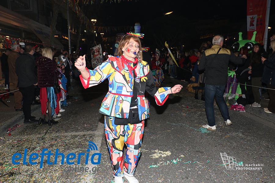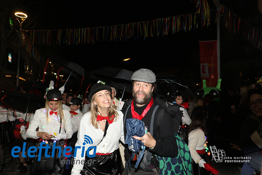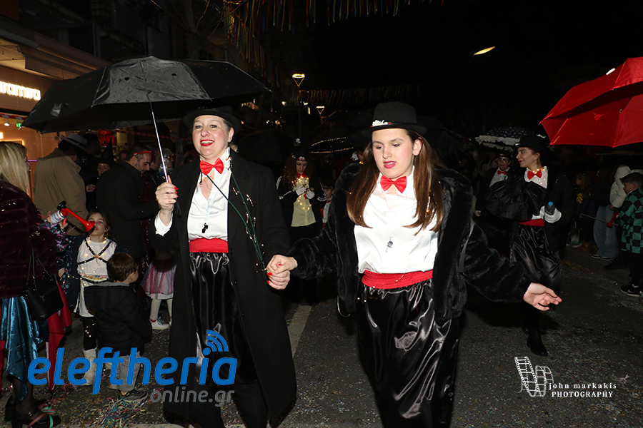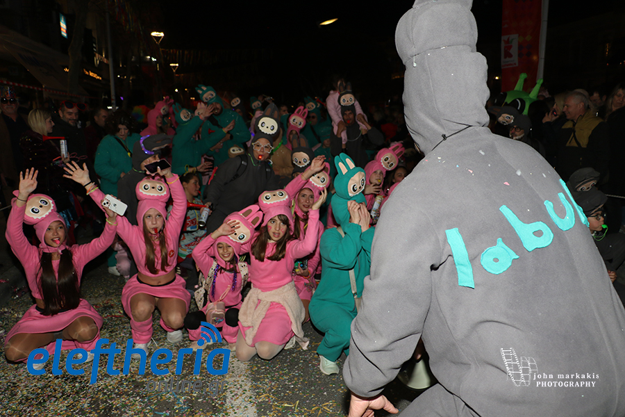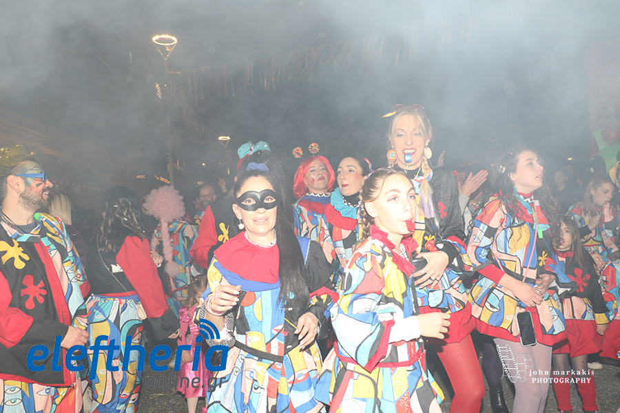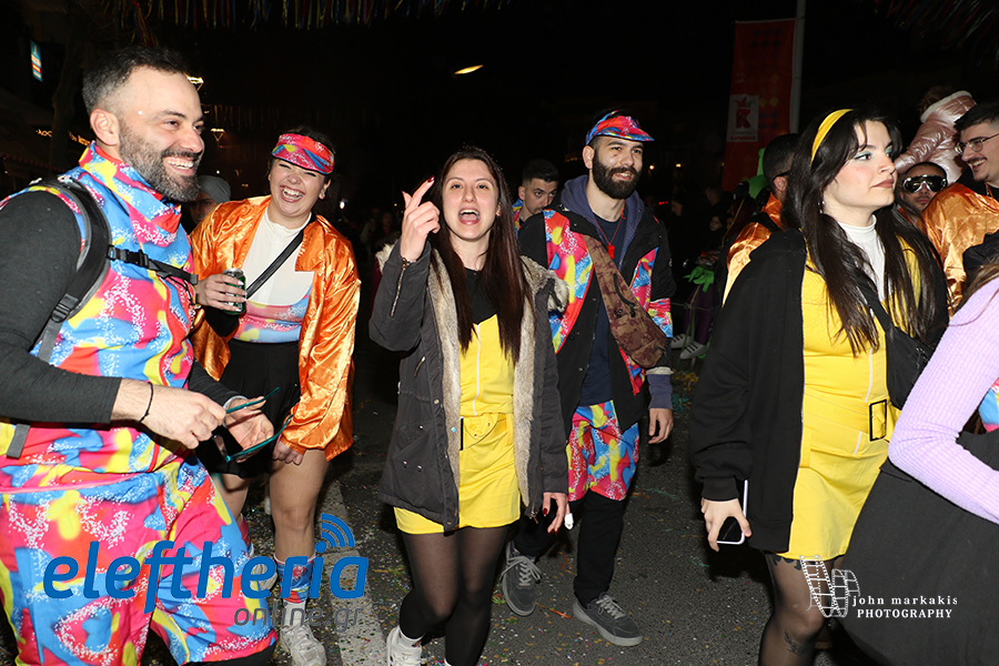 Οι δρόμοι του κέντρου μετατράπηκαν σε ένα ζωντανό σκηνικό γιορτής, όπου φώτα, ρυθμός και δημιουργικότητα ενώθηκαν σε μια βραδιά που θύμισε σε όλους πως το καρναβάλι δεν παρακολουθείται — βιώνεται.