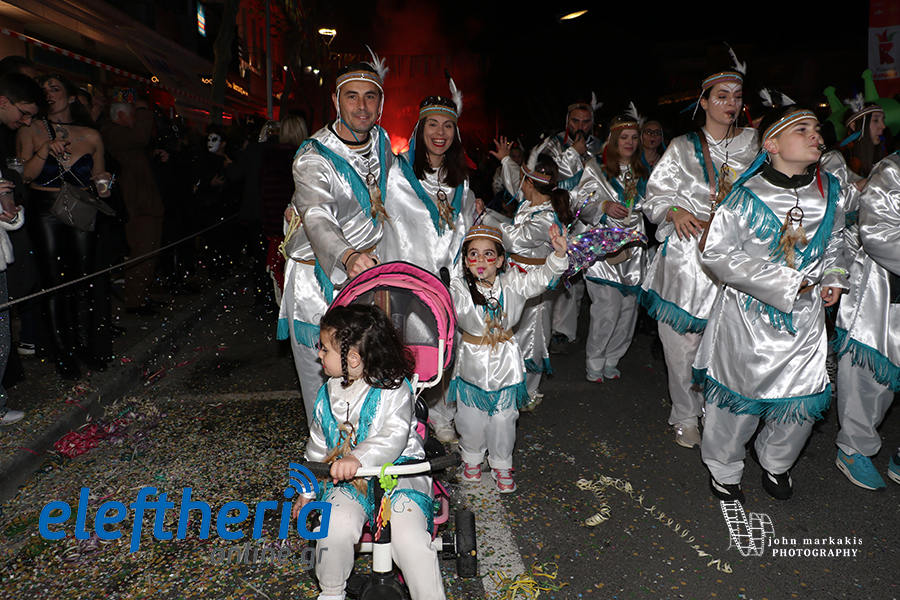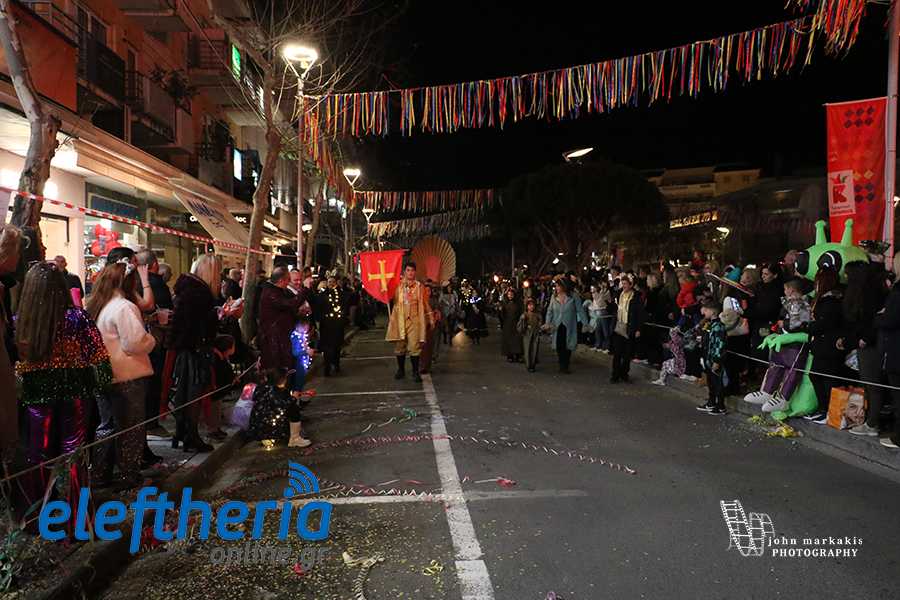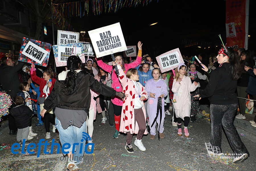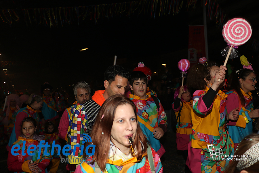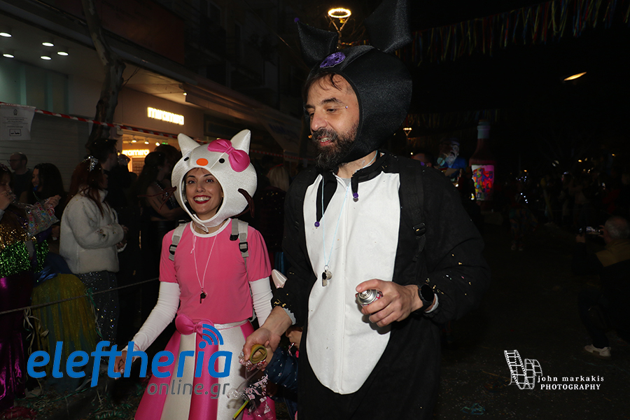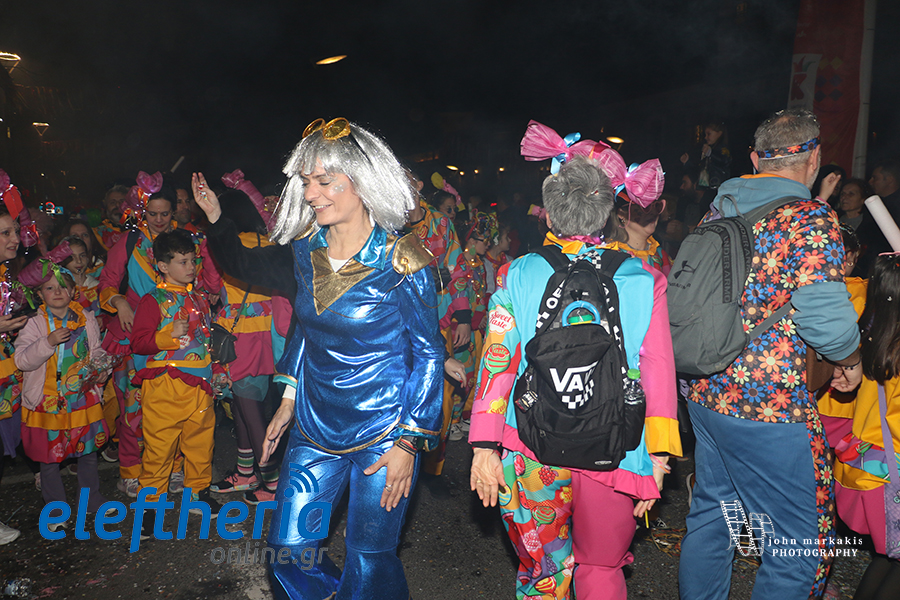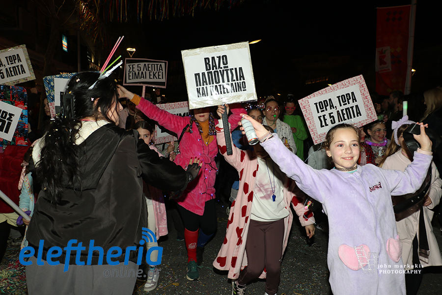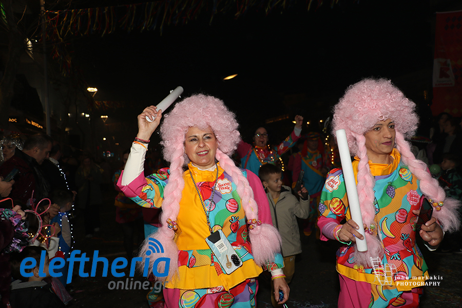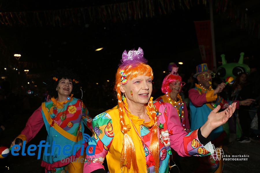 Οι δρόμοι του κέντρου μετατράπηκαν σε ένα ζωντανό σκηνικό γιορτής, όπου φώτα, ρυθμός και δημιουργικότητα ενώθηκαν σε μια βραδιά που θύμισε σε όλους πως το καρναβάλι δεν παρακολουθείται — βιώνεται.