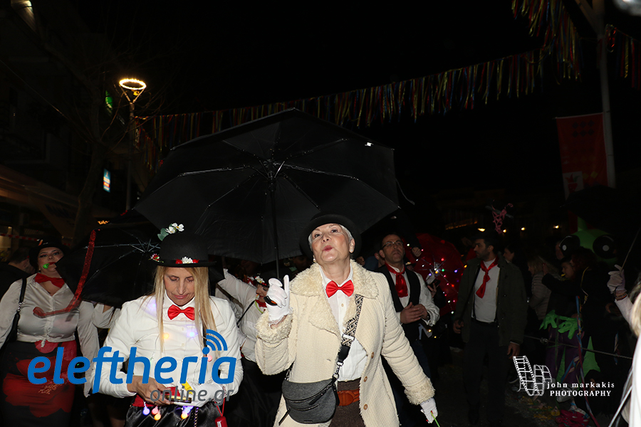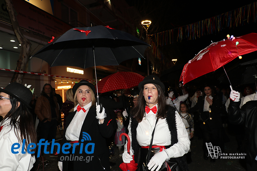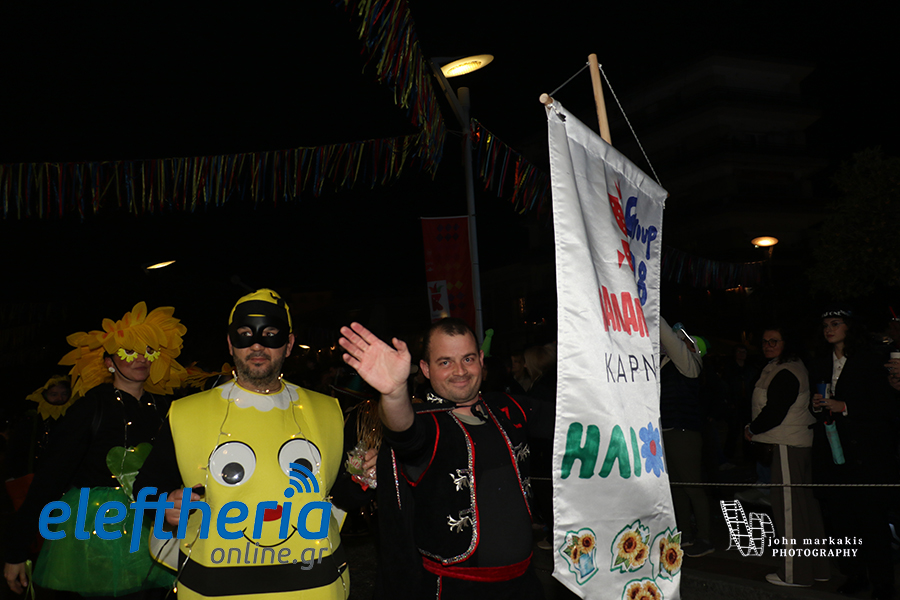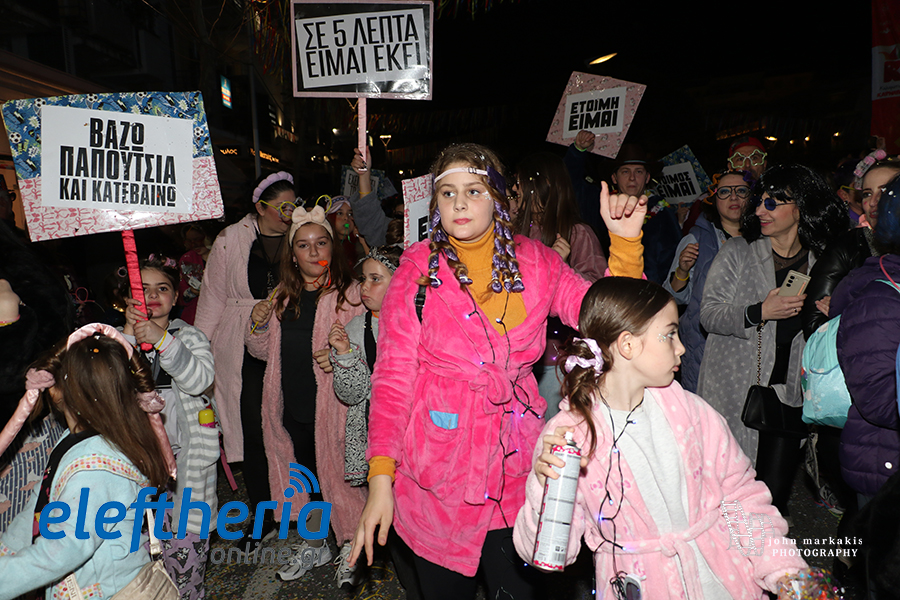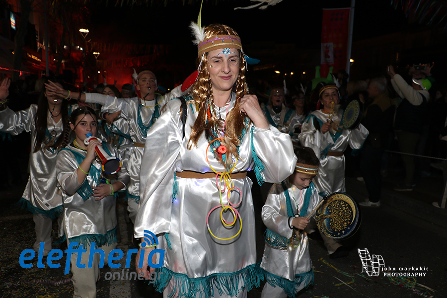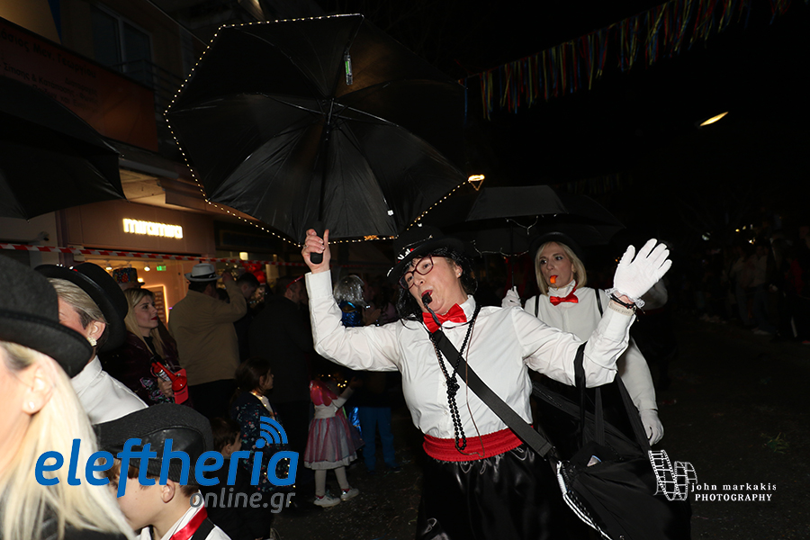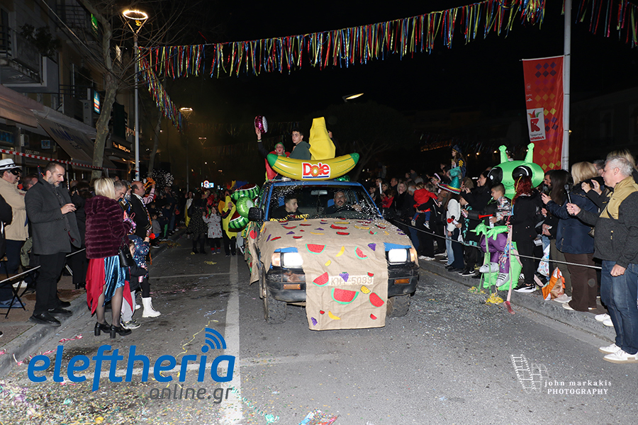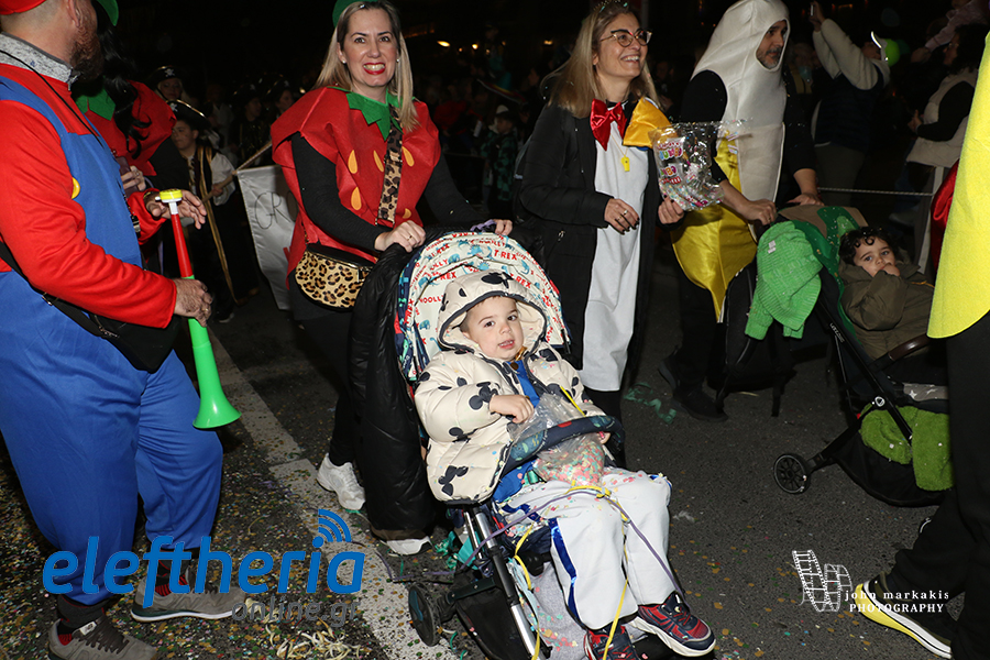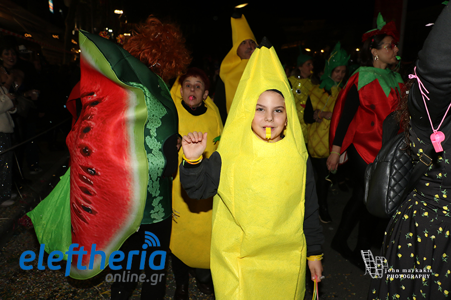 Οι δρόμοι του κέντρου μετατράπηκαν σε ένα ζωντανό σκηνικό γιορτής, όπου φώτα, ρυθμός και δημιουργικότητα ενώθηκαν σε μια βραδιά που θύμισε σε όλους πως το καρναβάλι δεν παρακολουθείται — βιώνεται.