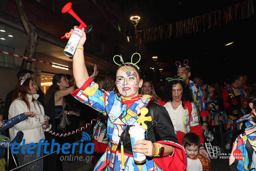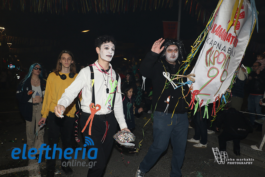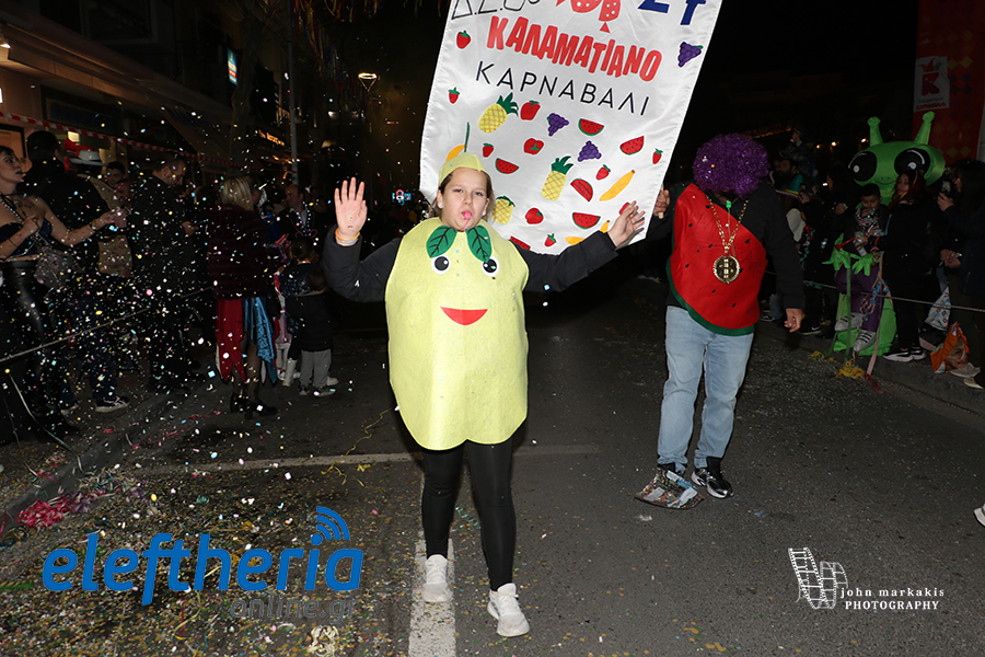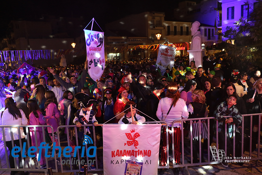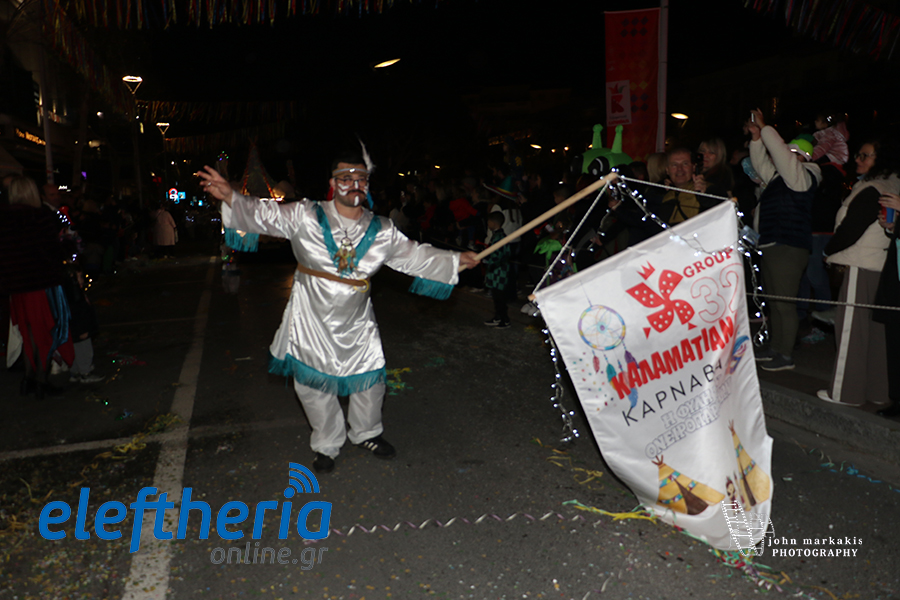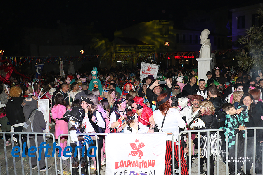 Στολές που έλαμπαν κάτω από τα φώτα της πόλης, άρματα, παρέες που χόρευαν ασταμάτητα και εκατοντάδες καρναβαλιστές συνέθεσαν μια εικόνα γεμάτη ενέργεια. Μικροί και μεγάλοι έγιναν μια μεγάλη παρέα, δίνοντας παλμό σε κάθε γωνιά της διαδρομής και επιβεβαιώνοντας ότι η Καλαμάτα ξέρει να γιορτάζει.