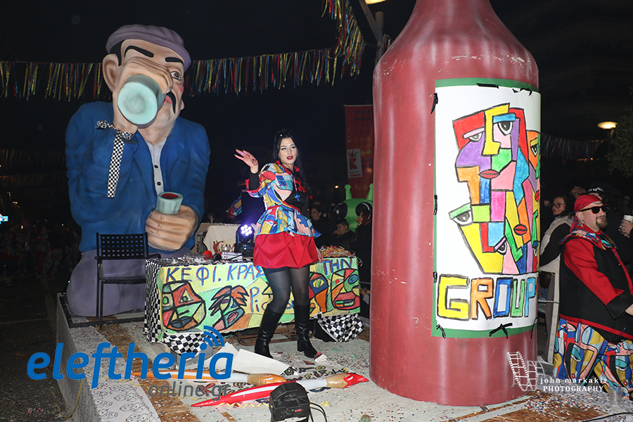 Η νυχτερινή παρέλαση κατέληξε στο ιστορικό κέντρο της πόλης, όπου η γιορτή συνεχίστηκε με αμείωτη ένταση. Εκεί στήθηκε ένα μεγάλο street party, με την DJ Μαρία Τραγιανού να αναλαμβάνει τα decks, μετατρέποντας τα στενά σε μια ανοιχτή πίστα χορού και παρατείνοντας τη μαγική καρναβαλική ατμόσφαιρα της βραδιάς.