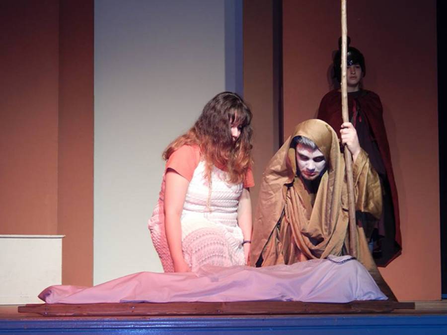 Φωτογράφος είναι η Μαρία Παναγιωτοπούλου. Οι "Φοίνισσες" θα παιχτούν το Σαββατοκύριακο 4 και 5 Απριλίου στις 8.30 μ.μ. στο αμφιθέατρο του Λυκείου Μεσσήνης.