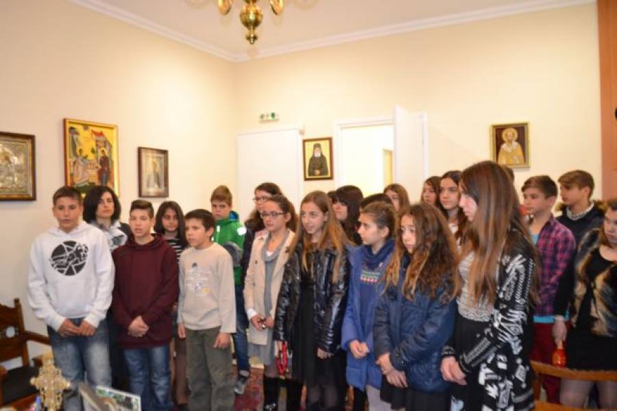 Οι μαθητές συνοδευόμενοι από τον διευθυντή του σχολείου Γιώργο Θεοδωρακόπουλο και την καθηγήτρια Μουσικής Εφη Κατσικάρη, βρέθηκαν στη Μητρόπολη στις 11 το πρωί, όπου με πολλή θέρμη τους υποδέχθηκε ο κ. Χρυσόστομος. Αφού άκουσε τα κάλαντα, έδωσε τις ευχές του και εξέφρασε τη μεγάλη του χαρά που τον επισκέφθηκαν. Κάλεσε δε τα παιδιά να είναι κοντά στο Χριστό, ενώ προσέφερε από ένα ημερολόγιο της Μητρόπολης στον καθένα για τον 2016 καθώς και χρηματικό ποσό για το σχολείο τους.