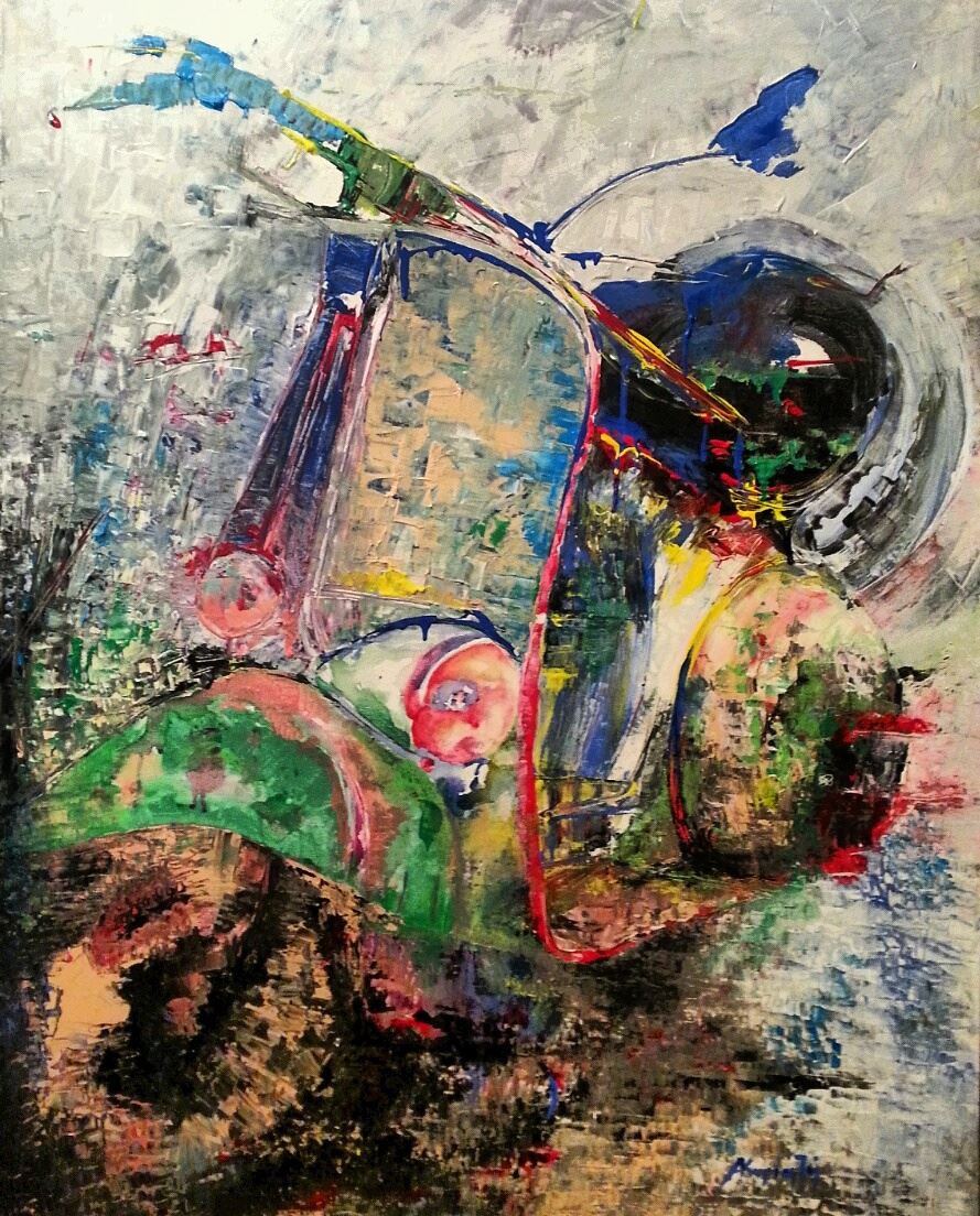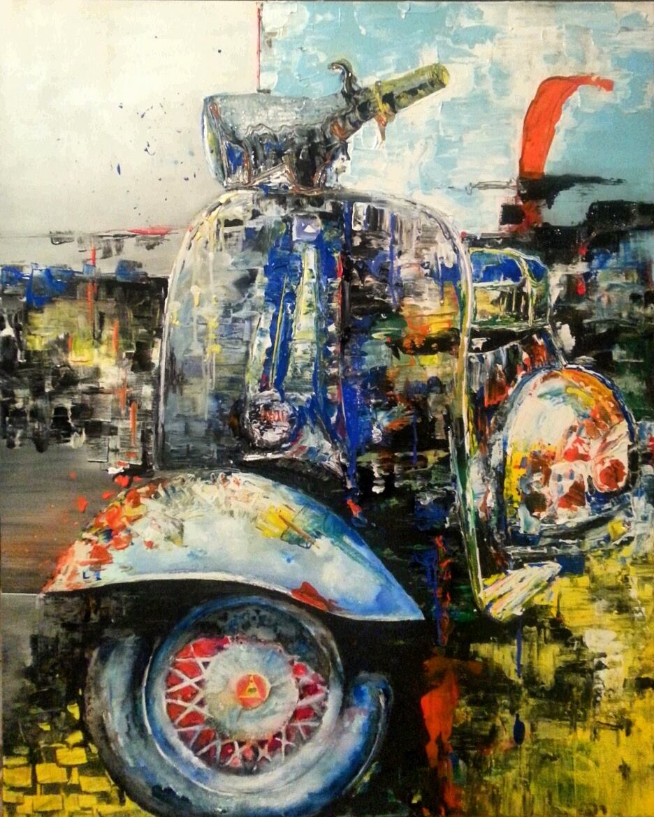 «Το ζωγραφικό μου έργο αναφέρεται κυρίως στο παλιό, ρετρό όχημα - αυτοκίνητο και σκούτερ βέσπα. Καταρχήν, το έργο στο σύνολό του αποτελείται από δύο επίπεδα ανάγνωσης. Σε πρώτη προσέγγιση, τα έργα με τα οχήματα αποτυπώνουν εκείνη τη χρονική στιγμή που τα ίδια βιώνουν την εγκατάλειψη, παρατημένα, ξεχασμένα, όχι σε μάντρες ή νεκροταφεία οχημάτων, αλλά μέσα στη φύση. Τα δάση, τα κτήματα, ακόμα και ο βυθός της θάλασσας γίνεται η νέα τους κατοικία. Ετσι, ο θεατής δεν αντιλαμβάνεται άμεσα την εγκατάλειψη, παρά μόνο μια γλυκιά νοσταλγική αίσθηση.