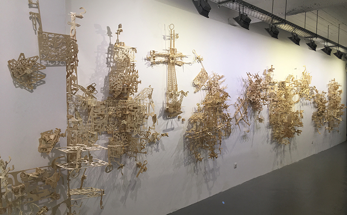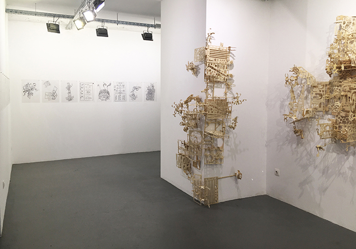 Στην έκθεση υπάρχουν επιτοίχιες ξύλινες συναρμολογούμενες κατασκευές ως μεμονωμένες καθαυτές δημιουργίες, είτε ως ένα ρέον εικαστικό περιβάλλον που βρίσκει συνέχεια μέσα από την ασυνέχεια των επιμέρους μελών του. Σύμφωνα με την επιμελήτρια της έκθεσης Χ. Κανελλοπούλου, φανερώνουν κατασκευαστικά χαρακτηριστικά κονστρουκτιβιστικών «αρχιτεκτονικών» δομών, καθώς και τις απεριόριστες και δαιδαλώδεις δυνατότητες του κολάζ μέσα από συνένωση θραυσμάτων. Τα έργα κλείνουν μέσα τους την ιδέα των readymades και των found objects του σουρεαλισμού. Tα κομμάτια τους, μαζικά βιομηχανικά αντικείμενα, οικειοποιούνται μέσα από την εικαστική πρακτική και αποτραβιούνται από το πλαίσιο της αυτοματοποιημένης παραγωγής τους για να χρησιμοποιηθούν με ευφάνταστους και πολυμήχανους τρόπους.