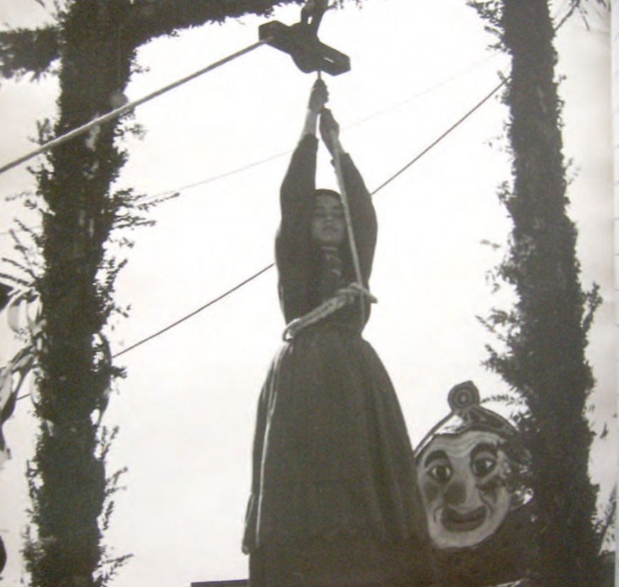 έθιμο που δεν έλλειψε καμμιά χρονιά από τότε. Κάθε Καθαρή Δευτέρα στήνουν μια κρεμάλα και κρεμούν απ’ τις αμασχάλες τους διαβάτες. Οι παριστάνοντες τους δήμιους ρωτάνε τον κρεμασμένο: