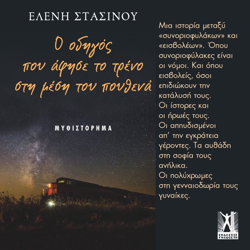 Η Ελένη Στασινού καταξιωμένη συγγραφέας με ξεχωριστές επιτυχίες, κυρίως ιστορικών μυθιστορημάτων και όχι μόνο, με το νέο της βιβλίο «Ο οδηγός που άφησε το τρένο στη μέση του πουθενά» εκδόσεις Γκοβόστη, καταθέτει μια ιστορία εμπνευσμένη από ένα πραγματικό συμβάν και μας προτρέπει μέσω της δεινής πένας της να το διαβάσουμε. Τη συναντήσαμε στο σπίτι της και μεταξύ καφέ και συζήτησης, ολοκληρώθηκε η παρακάτω ενδιαφέρουσα συνέντευξη.