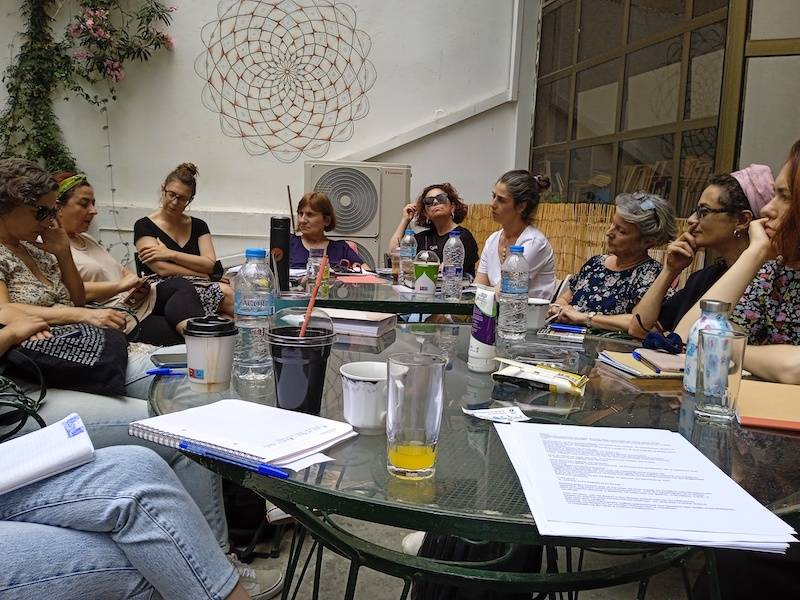 Ξεκίνησε φέτος τον Μάιο. Είναι ο χώρος και ο χρόνος, που λέγαμε. Γράφουμε, μοιραζόμαστε, συζητάμε, εξετάζουμε πρακτικά θέματα της συγγραφής, συνδέουμε την καλλιτεχνική έκφραση με το κοινωνικό και με το γυναικείο ζήτημα. Προσκαλούμε ομιλήτριες, εμπλουτίζουμε την εμπειρία. Τώρα ξεκινά ο φθινοπωρινός κύκλος. Ελπίζουμε να μπορέσουμε να διοργανώσουμε αντίστοιχα εργαστήρια και σε άλλες πόλεις.