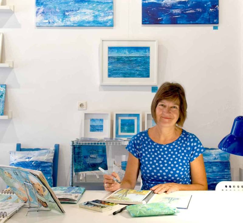 Η διαδικασία μου ποικίλλει. Μπορεί να ξεκινήσω με πρόχειρα σκίτσα ή να κοιτάξω τις φωτογραφίες μου για έμπνευση. Άλλοτε αντλώ από τη ζωή και άλλοτε από τις φωτογραφίες μου. Πρόσφατα ολοκλήρωσα δώδεκα νέους πίνακες για το καλλιτεχνικό ημερολόγιο του 2025, εκ των οποίων οι μισοί ήταν άμεσα εμπνευσμένοι από ένα ταξίδι στη Σκύρο με τον Χορευτικό Σύλλογο της Κορώνης τον Μάιο.