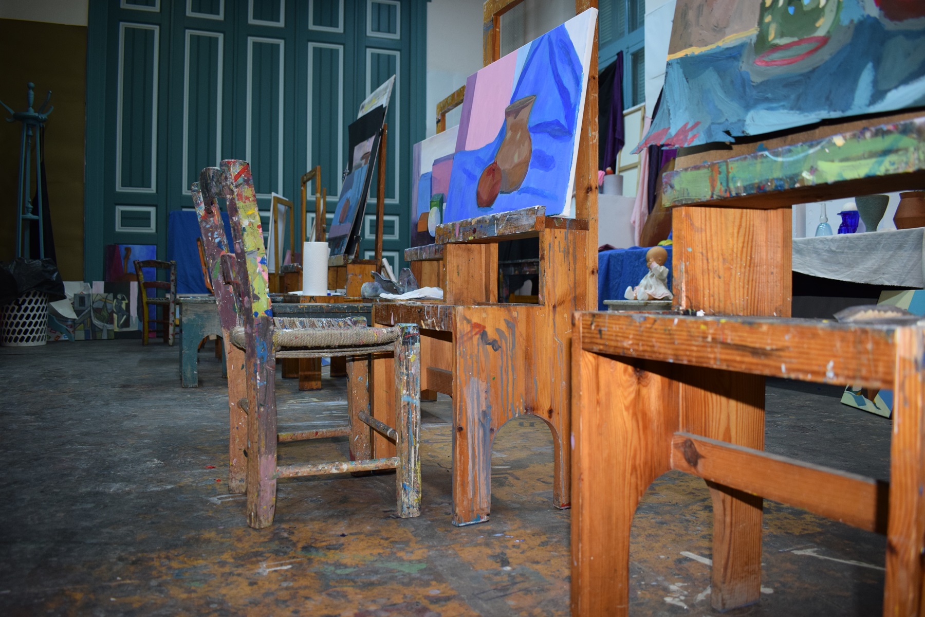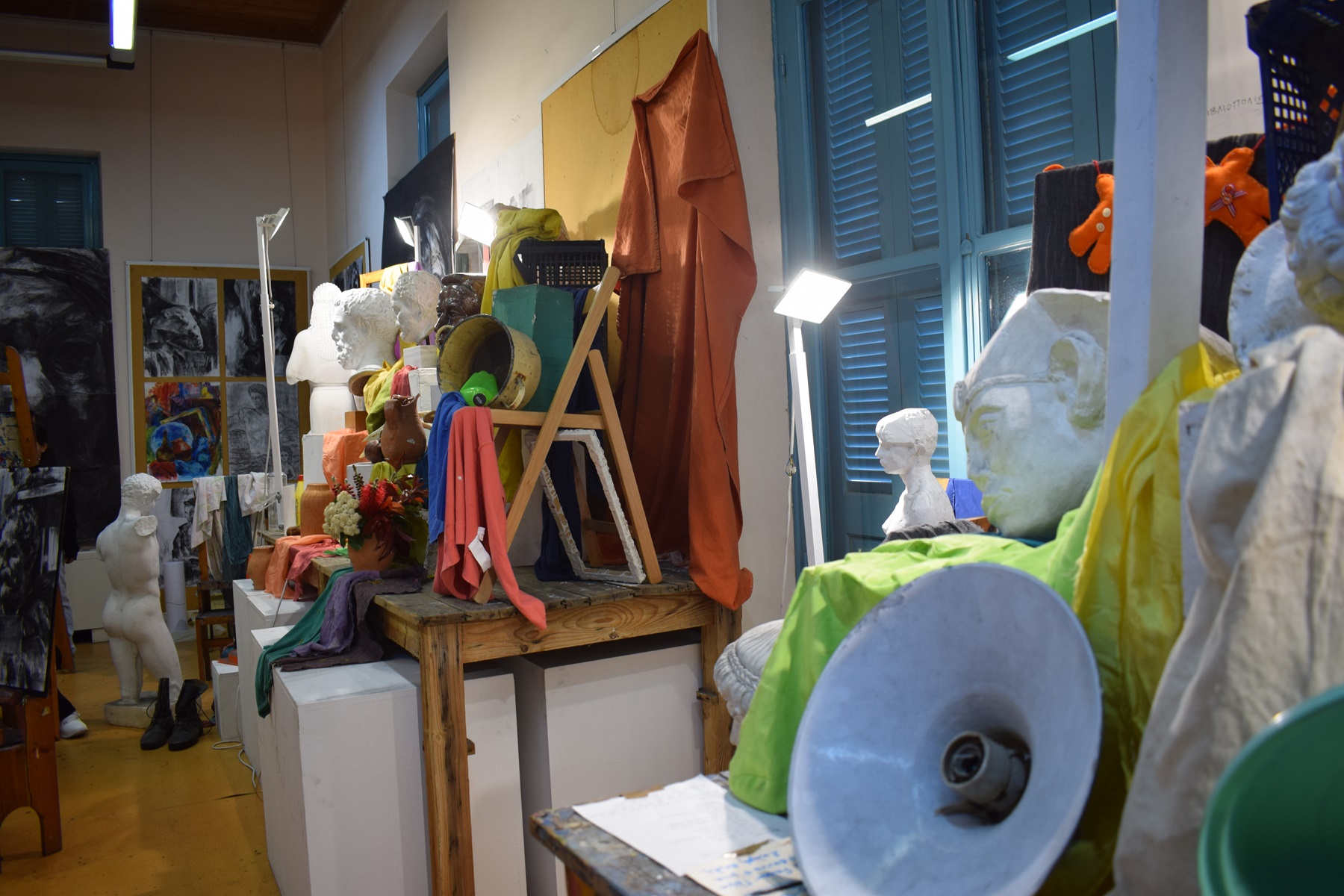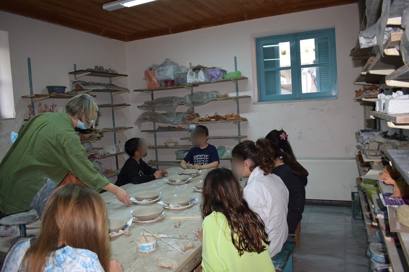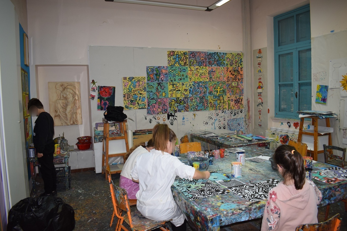 Το εργαστήρι είναι ανοικτό σε όλους για να έρθουν να δουν τι είναι αυτός ο χώρος. Δεν απευθύνεται σε κάποιους «ταλαντούχους» ή ειδήμονες της τέχνης, απευθύνεται σε όλους. Και σε αυτούς που ξέρουν τι ζητάνε ακριβώς αλλά και σε αυτούς που θέλουν να διερευνήσουν. Όταν έρχεται κάποιος δεν χρειάζεται να γραφτεί αμέσως. Πηγαίνει σε ένα εργαστήρι πχ. ζωγραφικής κι αν είναι αυτό που ζητά έχει καλώς, αν όχι πηγαίνει σε άλλο εργαστήρι πχ. κεραμικής ή χαρακτικής κτλ, μέχρι να αισθανθεί ότι βρήκε αυτό που θέλει. Στο εργαστήρι απασχολούνται 12 δάσκαλοι, 7 είναι ζωγράφοι και 5 κεραμίστες.