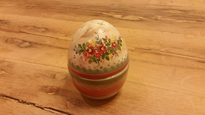 Για αυτούς που αναζητούν κάτι πιο παραδοσιακό χωρίς πολλές διακοσμήσεις, το κόκκινο αυγό μας είναι μια εξαιρετική επιλογή. Και αυτό “ανοίγει‘ και γεμίζει με γλυκά εάν το επιθυμείτε. Συνδυάζεται όμορφα με την κοτούλα της ίδιας τεχνοτροπίας.