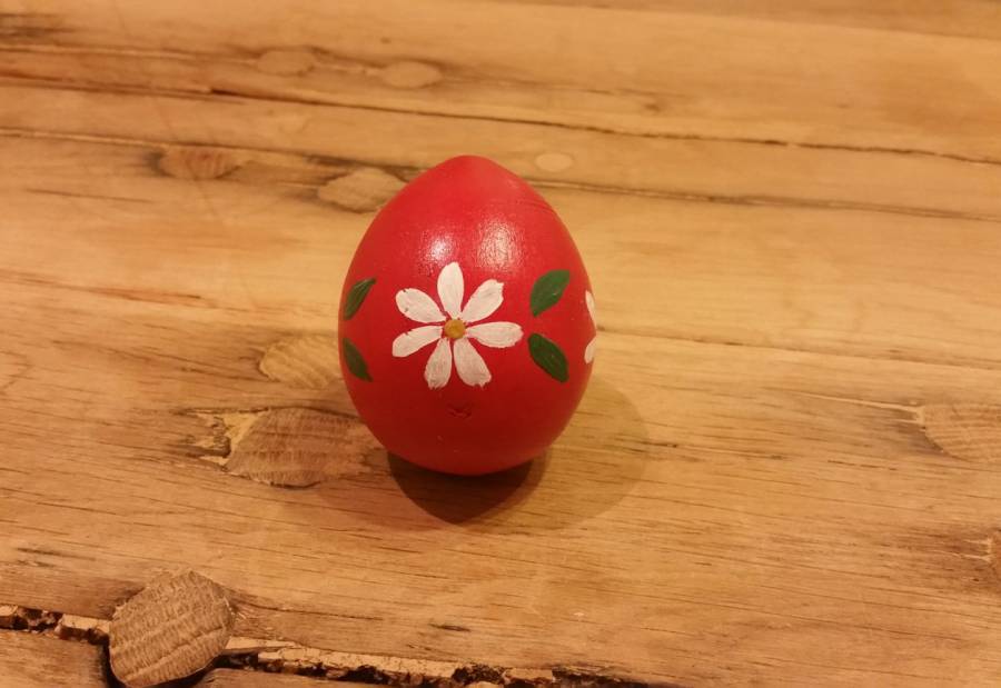 Πανέμορφο και χειροποίητο, το κόκκινο αυγό είναι ζωγραφισμένο στο χέρι και διακοσμημένο με μικρές λευκές μαργαρίτες. Χαρίστε το στο βαφτιστήρι σας ή στους καλεσμένους σας στο πασχαλινό τραπέζι. Μια υπέροχη και οικονομική πρόταση.