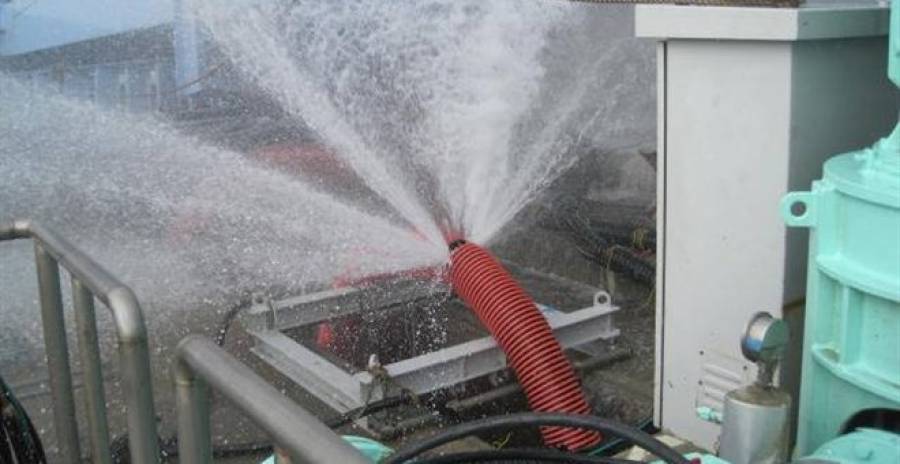 Η εταιρία άρχισε το πρωί τη μεταφορά με τη βοήθεια αντλιών των 13.000 τόνων νερού από την δεξαμενή που προκλήθηκε η διαρροή σε άλλη.