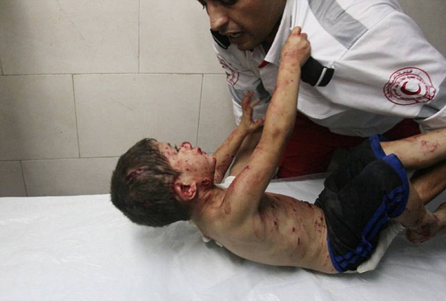 Μάλιστα, μια ημέρα πριν μεταφερθεί ο μικρός στο νοσοκομείο, τέσσερα αγοράκια -ηλικίας 9 έως 11 ετών- έχασαν τη ζωή τους, όταν χτυπήθηκαν από πύραυλο, ενώ έπαιζαν ποδόσφαιρο σε παραλία στη Λωρίδα της Γάζας.