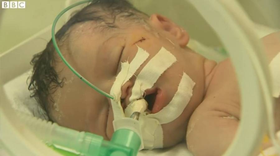 Το βρέφος υποστηρίζεται μηχανικά και σύμφωνα με τους γιατρούς έχει πιθανότητες 50% να επιζήσει.