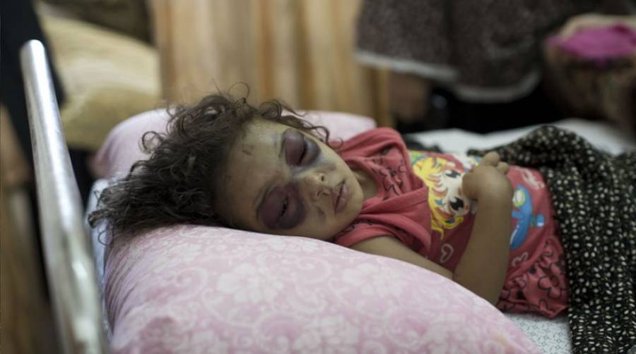 Τα μελανιασμένα μάτια της μόλις δύο ετών Παλαιστίνιας Naama Abu Al-Foul, που χτυπήθηκε από πύραυλο των Ισραηλινών, ενώ έπαιζε σε δρόμο, είναι ο πιο αξιόπιστος και αδιάψευστος μάρτυρας των δοκιμασιών που περνούν τα παιδιά στη Λωρίδα της Γάζας...