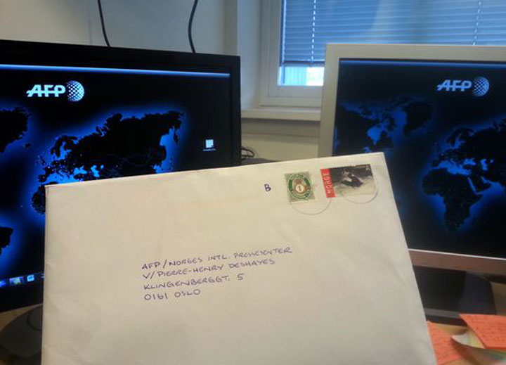 Ο φάκελος με την επιστολή του Μπρέιβικ όπως έφτασε στα γραφεία του Γαλλικού Πρακτορείου Ειδήσεων