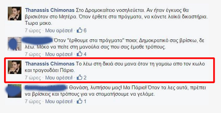 "Tο λέω στη δικιά σου τη μάνα όταν την γ... από τον κ... και τραγουδάει Πάριο"