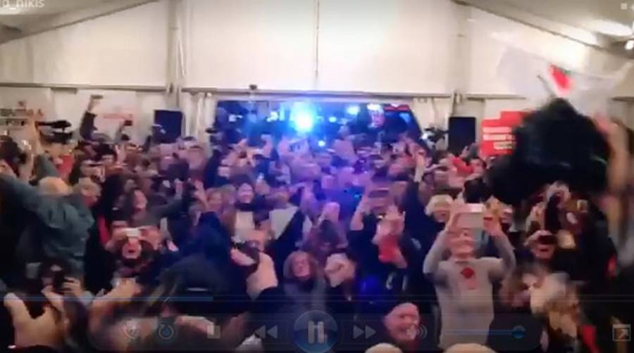 Ανάμεσα στα συνθήματα που φώναζαν οι δεκάδες συγκεντρωμένοι οπαδοί του ΣΥΡΙΖΑ ήταν και το σύνθημα που ο Πάμπλο Ιγκλέσιας, ο ηγέτης των Podemos, φώναξε από μικροφώνου στην κεντρική πρεοκλογική συγκέντρωση του ΣΥΡΙΖΑ, την περασμένη Πέμπτη: «ΣΥΡΙΖΑ, Podemos, Venceremos».