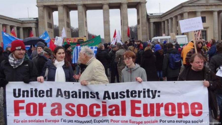 Με σύνθημα «Η Ελλάδα δεν είναι μόνη της» πραγματοποιήθηκε το απόγευμα του Σαββάτου πορεία που ξεκίνησε από το υπουργείο Οικονομικών και κατέληξε στην Πύλη του Βρανδεμβούργου. Όπως αναφέρει η Deutsche Welle, βασικός στόχος της διαδήλωσης ήταν η παροχή στήριξης στη νέα ελληνική κυβέρνηση αλλά και να εκφραστεί διαμαρτυρία για την ακολουθούμενη πολιτική της λιτότητας στην Ευρώπη.
