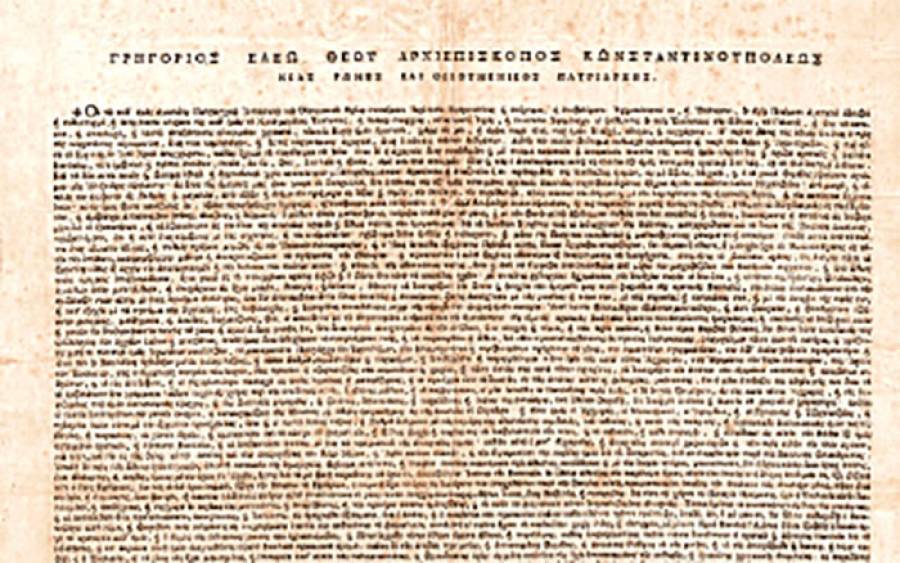 «Πρόβλημα διόλου ψευδές και ανύπαρκτον, και μόνον της ιδικής των κακοβουλίας και ματαιοφροσύνης γέννημά τε και αποκύημα. Επειδή, εν ω το τοιούτον είναι αδύνατον ηθικώς και πολλής προξένον μομφής εις την ρωσσικήν Αυτοκρατορίαν, και ο ίδιος ενταύθα εξοχώτατος Πρέσβυς αυτής έδωκεν έγγραφον πληροφορίαν, ότι ουδεμίαν ή είδησιν ή μετοχήν έχει το ρωσσικόν κράτος εις αυτήν την υπόθεσιν», αναφερόταν χαρακτηριστικά στον αφορισμό.
