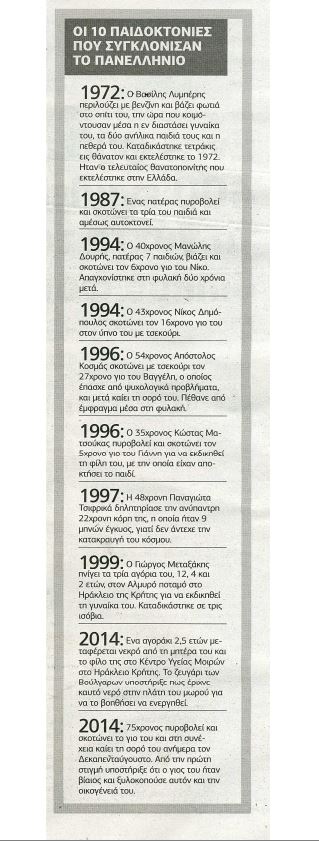 Από το 1972 και μέχρι την περιπέτεια της 4χρονης Άννυ ο «Ελεύθερος Τύπος» παρουσιάζει 10 παιδοκτονίες που αποτέλεσαν πρώτο θέμα στις συζητήσεις όλων μας. Πηγή: Ελεύθερος Τύπος enikos.gr