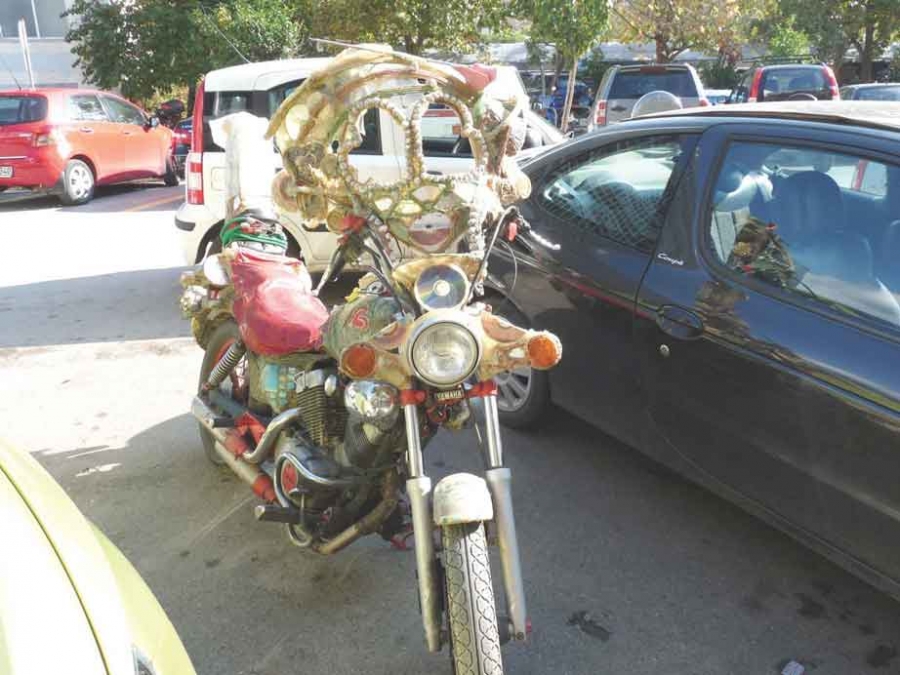Εκαψε... καρδιές η μοτοσικλέτα που εμφανίστηκε προχθές στην οδό Ψαρών στην Καλαμάτα, προερχόμενη, όπως μάθαμε από τη δυτική Μεσσηνία. Ο παθιασμένος -καθώς φαίνεται- με τη μηχανή του μοτοσικλετιστής, έχει βάλει όλη του την τέχνη και τη φαντασία για να μετατρέψει το όχημά του σε αξιοπρόσεκτο δημιούργημα. Κι έχει φροντίσει η μοτοσικλέτα του να έχει τα πάντα, ακόμα και μουσική...
