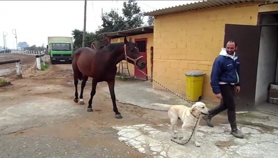 Ο Οβελίξ (έτσι φωνάζουν τον πανέξυπνο σκύλο) οδηγεί το άλογο στο στάβλο του Ιππικού Ομίλου στην Καλαμάτα. You must have the Adobe Flash Player installed to view this player.