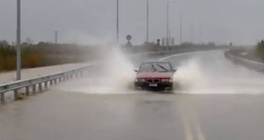 Τα νερά από τα πλημμυρισμένα χωράφια έχουν... πνίξει το δρόμο αμέσως πριν τον κόμβο, με συνέπεια αρκετά οχήματα να έχουν ακινητοποιηθεί προσωρινά εκεί από προχθές το βράδυ. Το "ποτάμι" αυτό δημιουργεί σοβαρά προβλήματα στην κίνηση των οχημάτων, και ήδη έχουν προκληθεί αρκετά τροχαία με υλικές ζημιές.