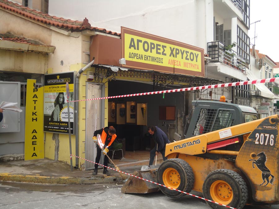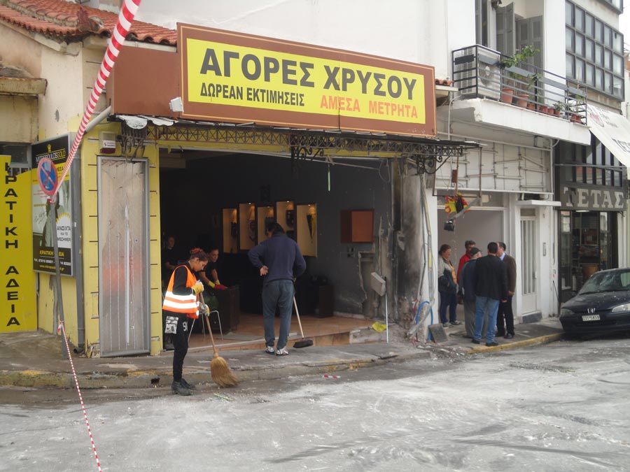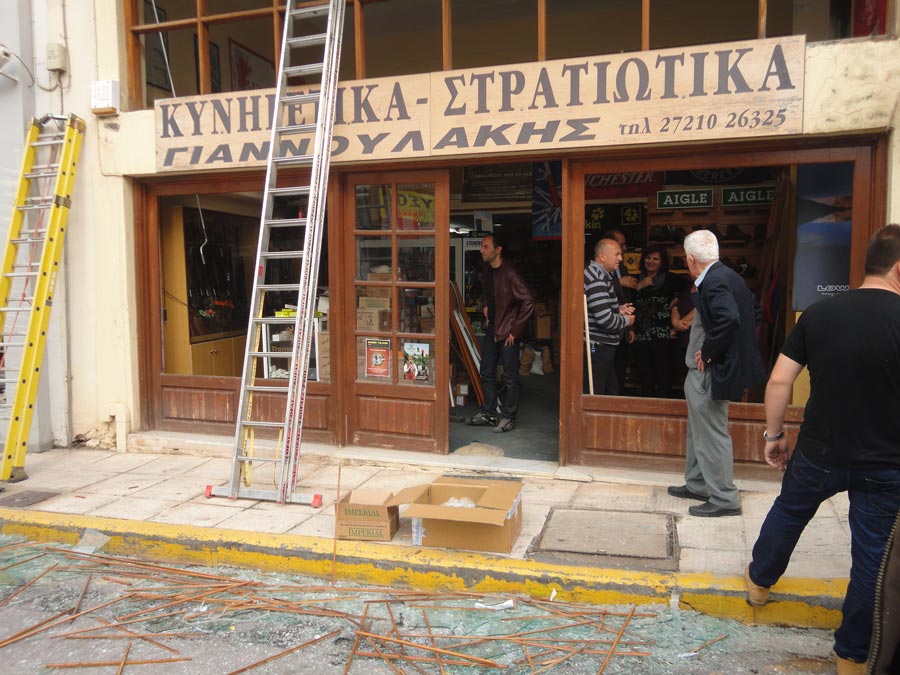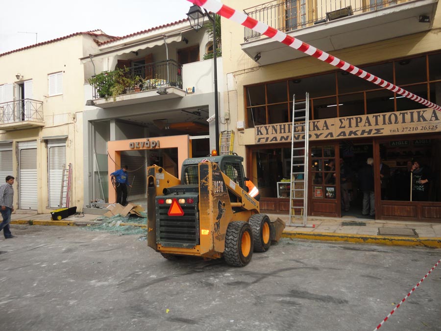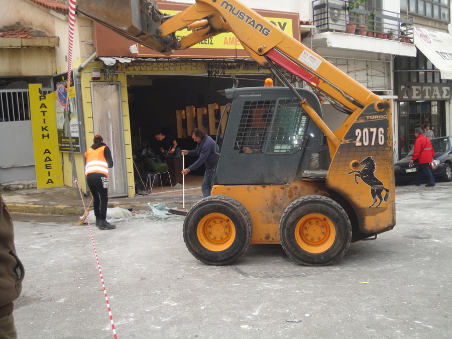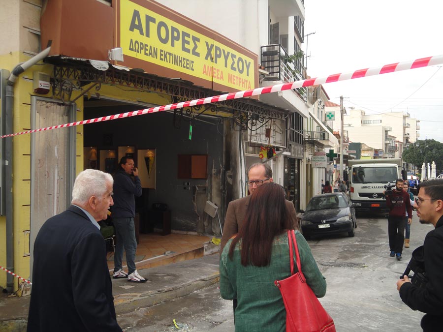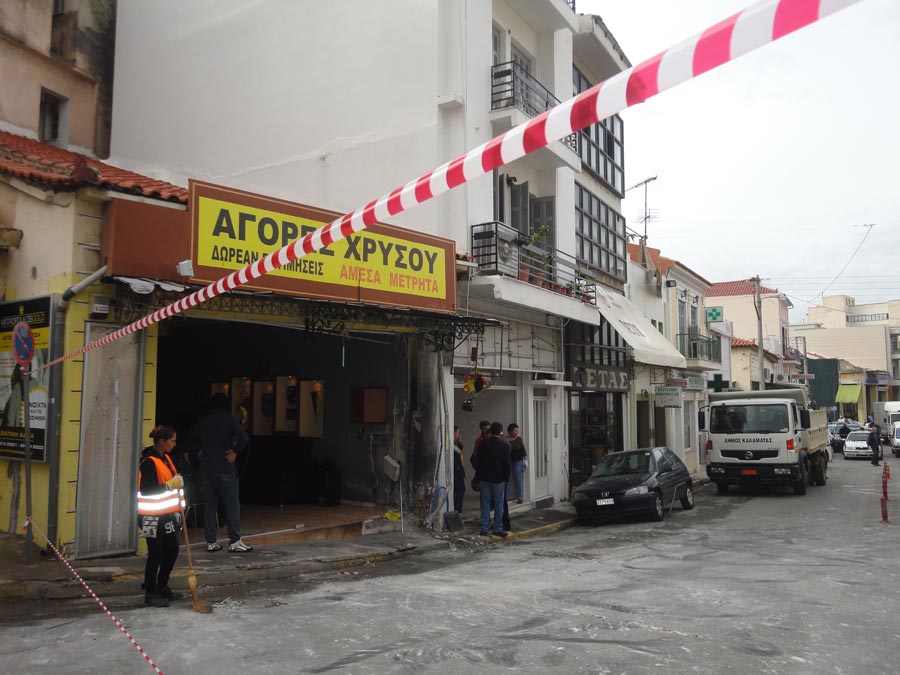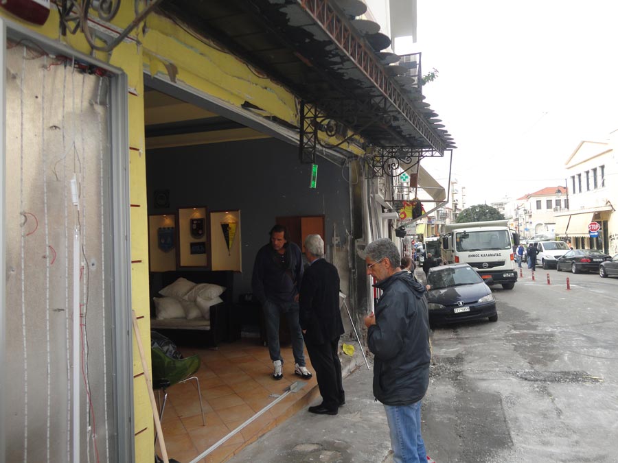 Ζημιές προκλήθηκαν και σε παρακείμενα καταστήματα, όπου από το πρωί πραγματοποιούνται εργασίες αποκατάστασης των σπασμένων τζαμαριών κ.α. Στο σημείο βρέθηκε και ο δήμαρχος Καλαμάτας Παναγιώτης Νίκας.