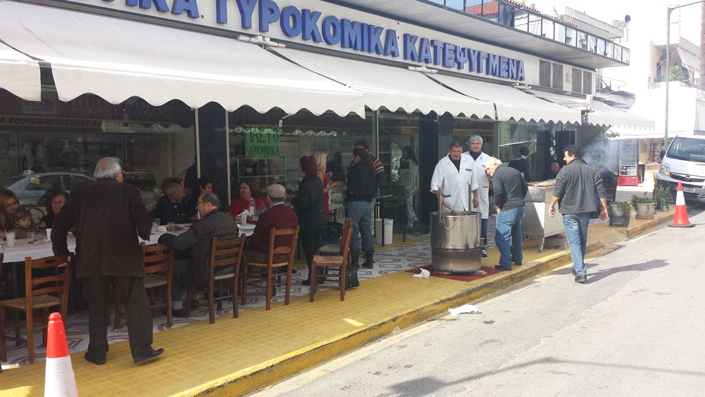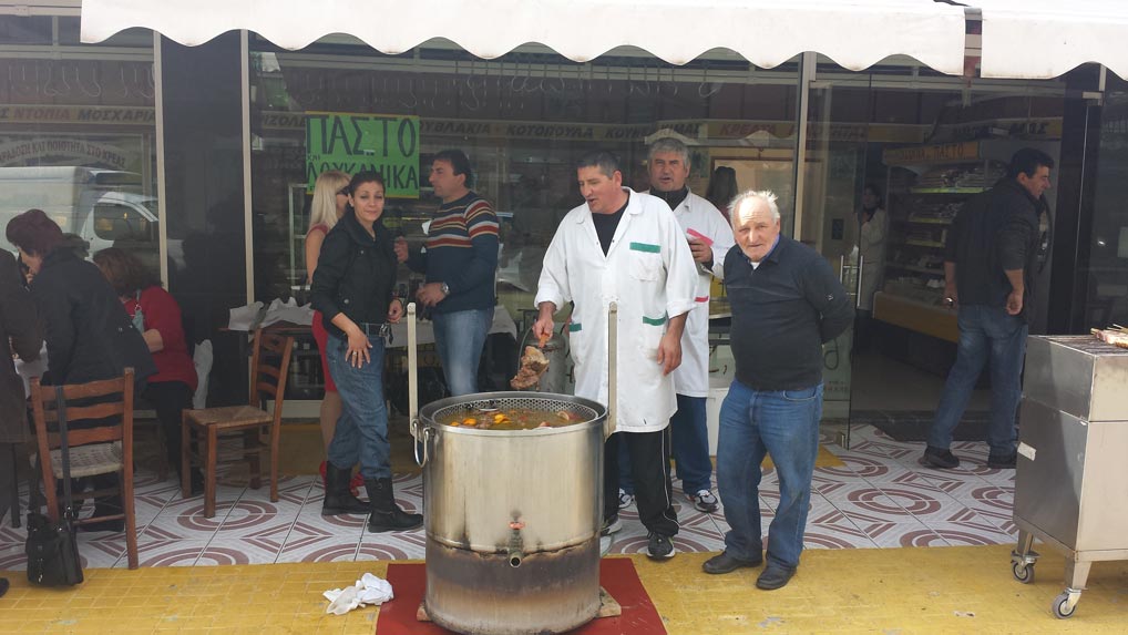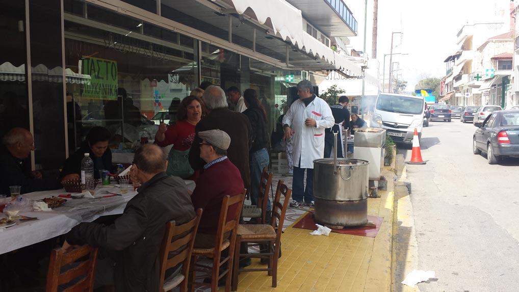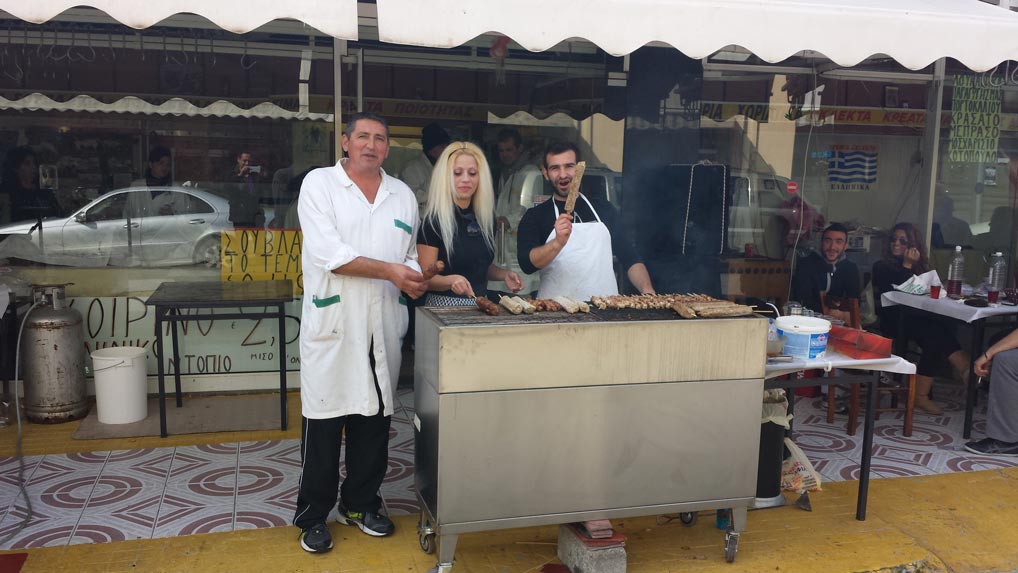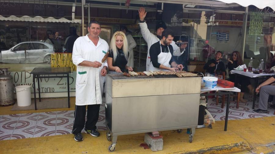 Το κρεοπωλείο των αδερφών Κυρκιλή έστησε ψησταριές και πρόεσφερε διάφορα κεράσματα σε όσους περνούσαν από το κέντρο του Μελιγαλά...