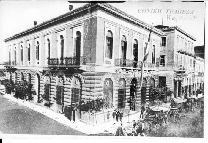 18. Το κτήριο του σημερινού Δημαρχείου με τις άμαξες στην Αριστομένους. Παλαιότερα στέγαζε την Τράπεζα Αθηνών και μετά την Εθνική.