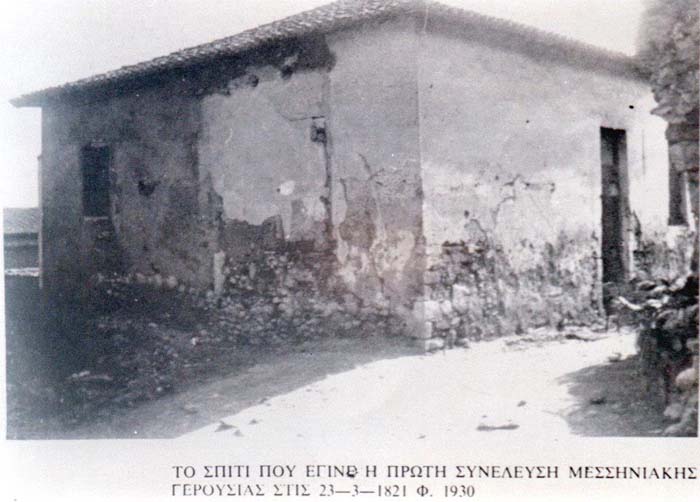 69. Κατά την παράδοση αυτό ήταν το σπίτι στο οποίο έγινε η πρώτη συνέλευση της Μεσσηνιακής Γερουσίας στις 23 Μαρτίου 1821. Σήμερα έχει μείνει το όνομα του δρόμου που βρισκόταν (ανεβαίνοντας προς το Κάστρο) και μια αναμνηστική πινακίδα εκεί όπου έστεκε το κτήριο το οποίο έχει κατεδαφιστεί εδώ και δεκαετίες.