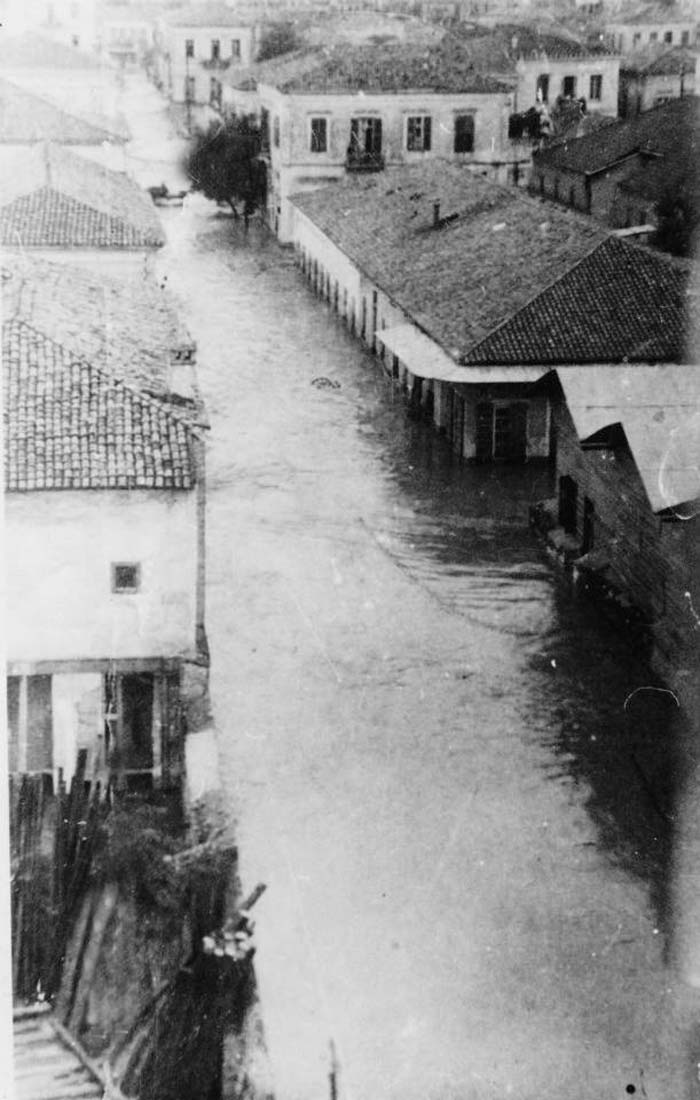 79. Η Κολοκοτρώνη στην πλημμύρα του 1924 σε άλλη λήψη από χαμηλότερο σημείo, πάλι από τα σκαλιά του Αγίου Νικολάου.
