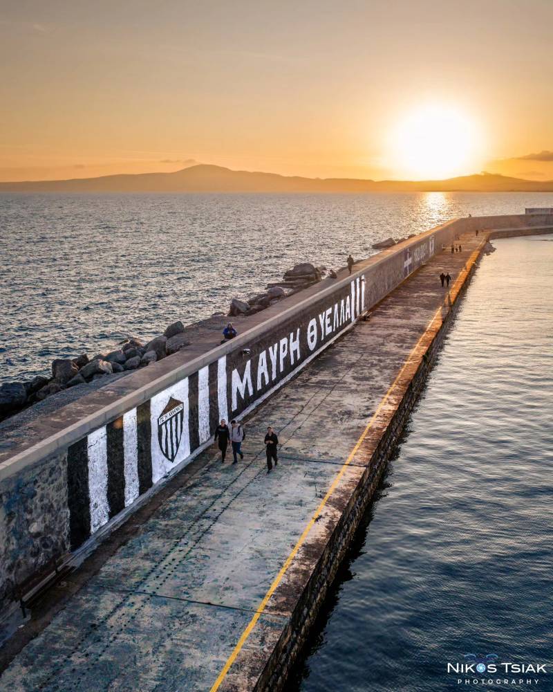 Οι εικόνες από ψηλά, όπως η πρόσφατη λήψη drone του Νίκου Τσιακαλάκη, έρχονται να επιβεβαιώσουν αυτό που οι ντόπιοι γνωρίζουν καλά: Πως εκεί, στο όριο θάλασσας και ουρανού, το φως της δύσης αποκτά μια σχεδόν κινηματογραφική διάσταση.