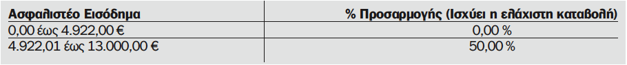 Ασφαλιστέο Εισόδημα % Προσαρμογής (Ισχύει η ελάχιστη καταβολή)